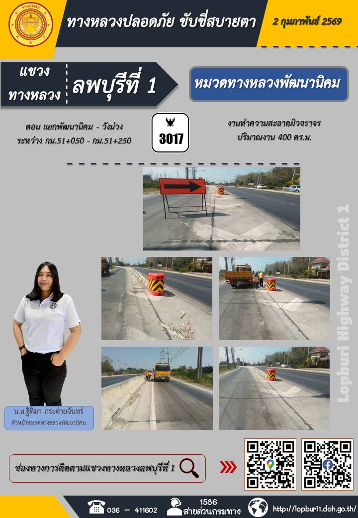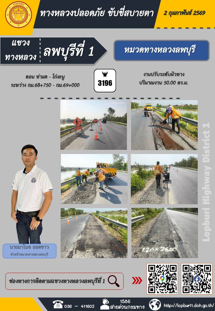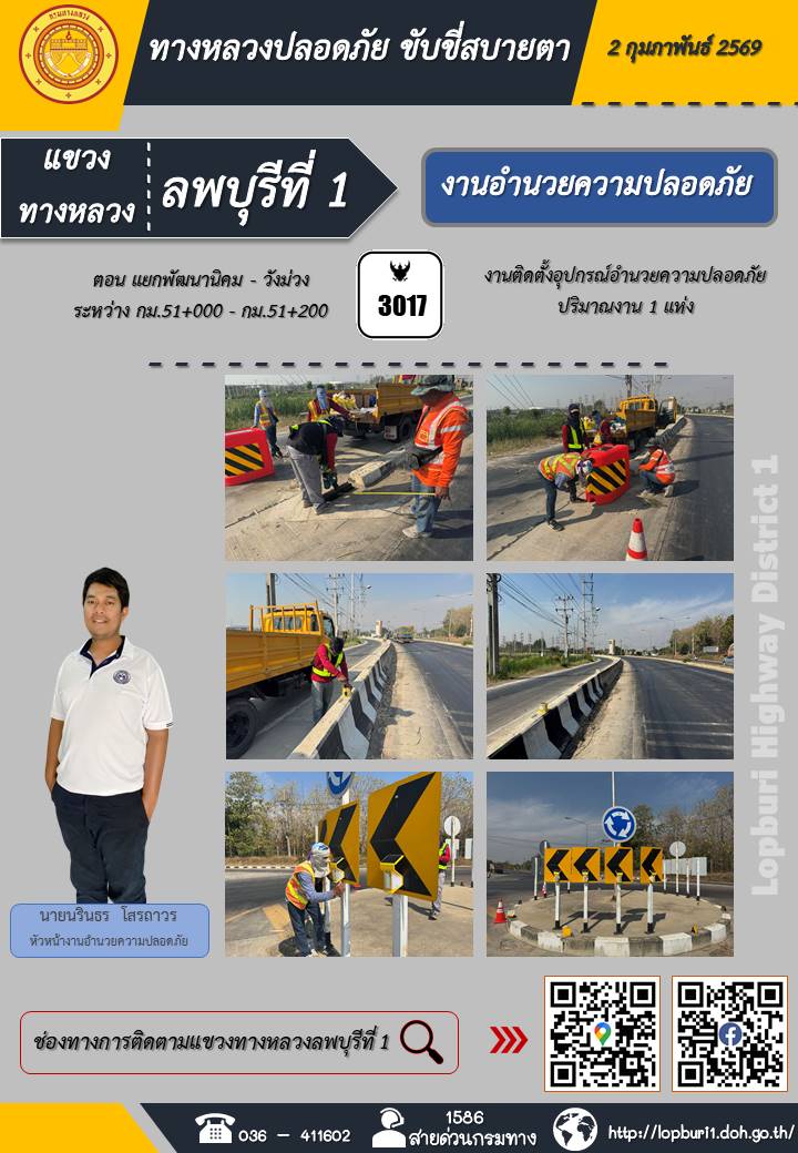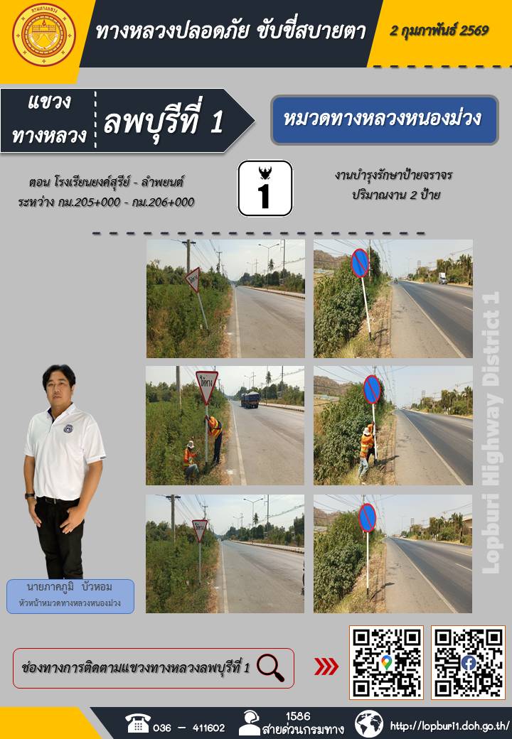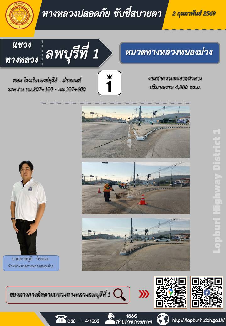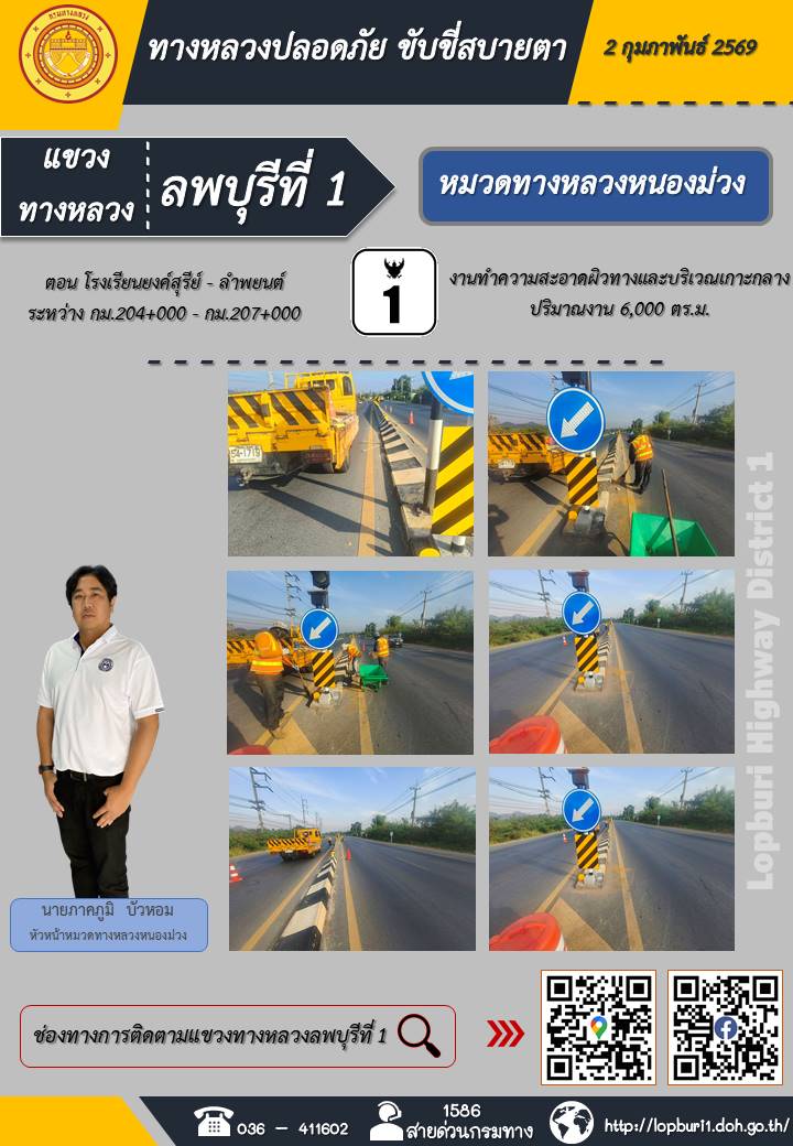ทางหลวงปลอดภัยขับขี่สบายตา แขวงทางหลวงลพบุรีที่ 1 ประจำวันที่ 1 กุมภาพันธ์ 2569