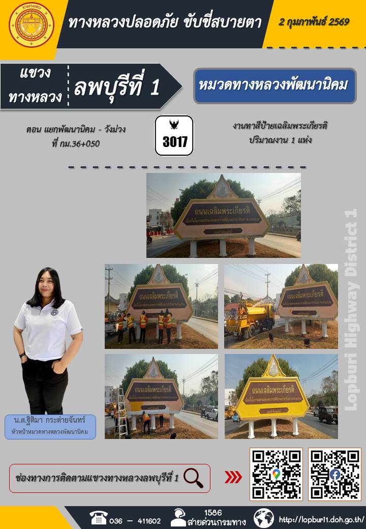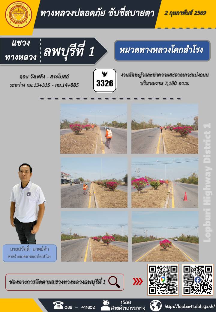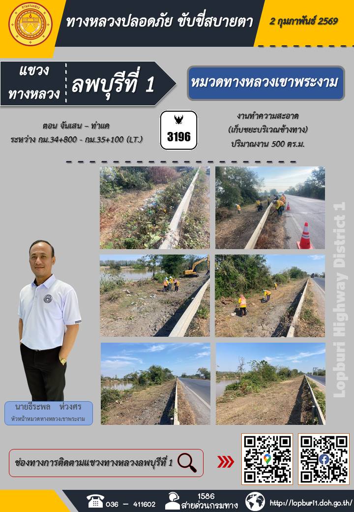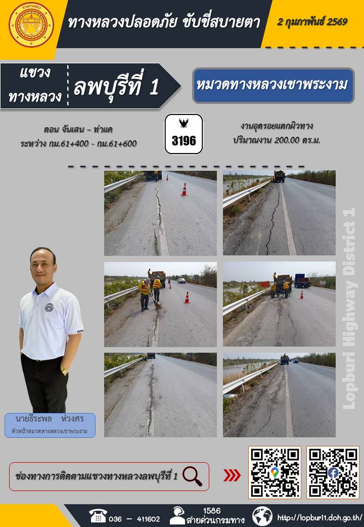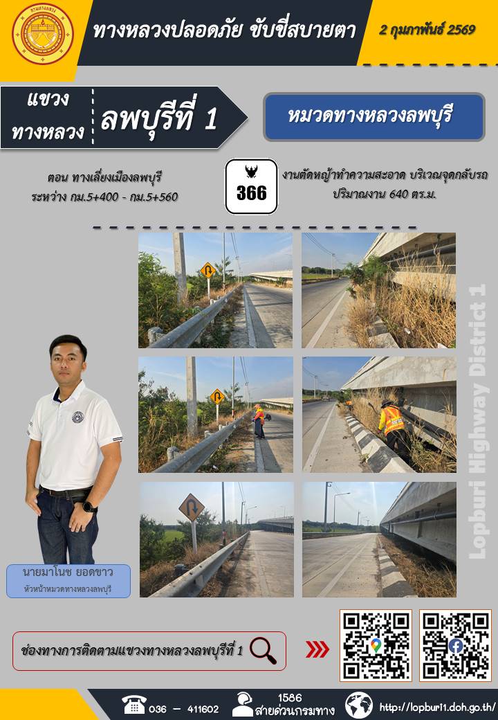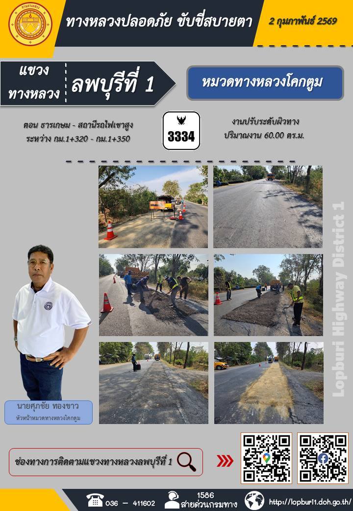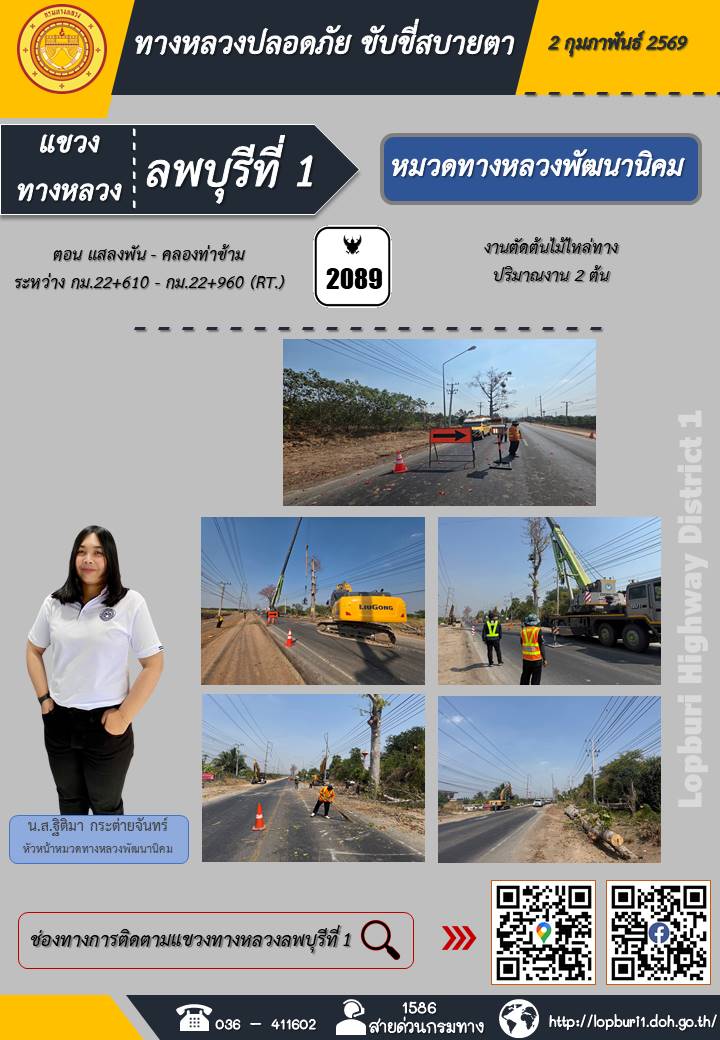 ทางหลวงปลอดภัยขับขี่สบายตา แขวงทางหลวงลพบุรีที่ 1 ประจำวันที่ 1 กุมภาพันธ์ 2569