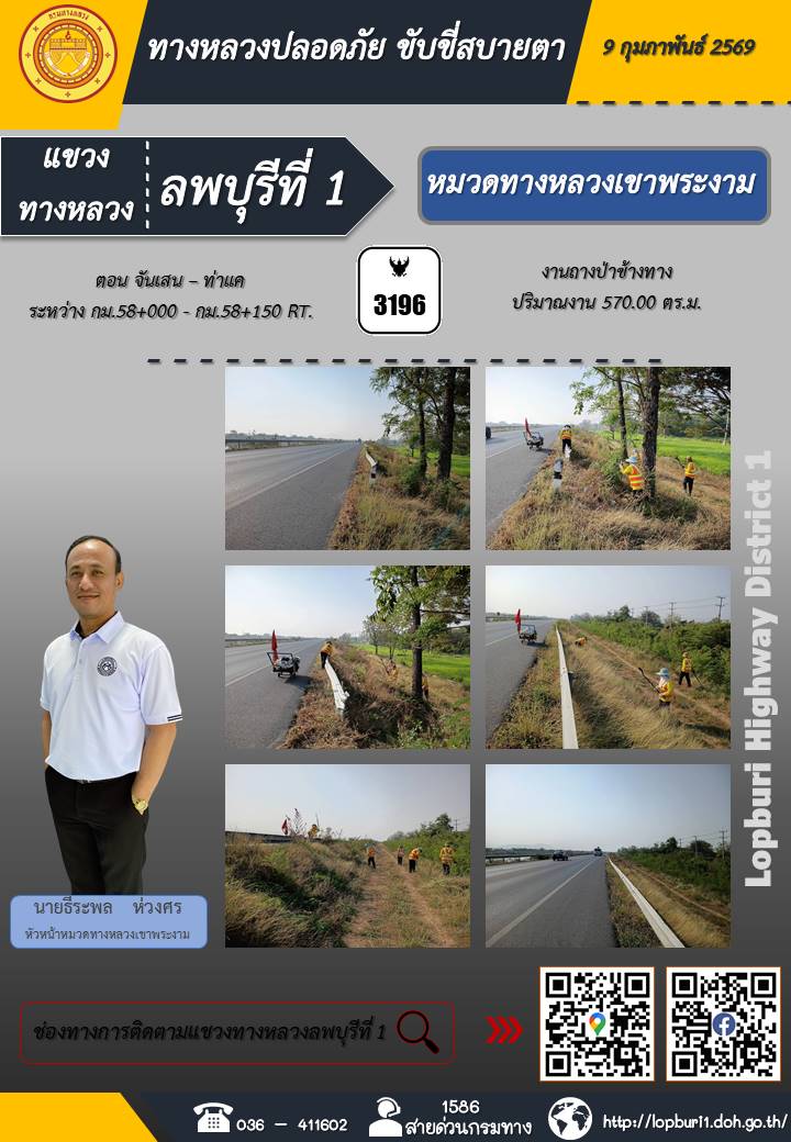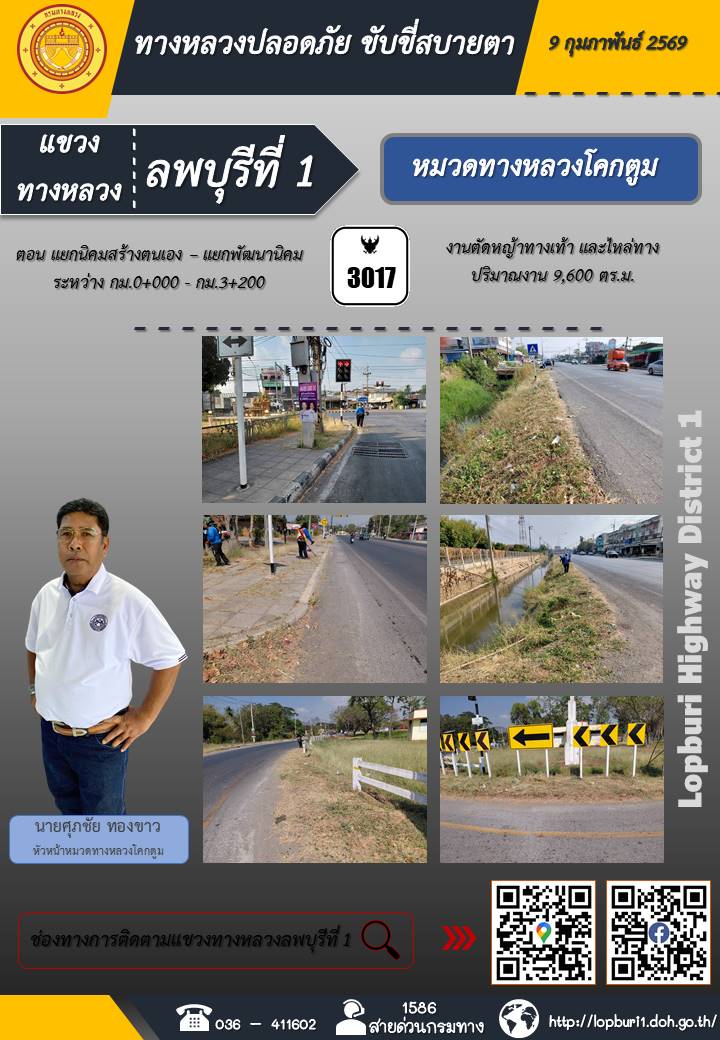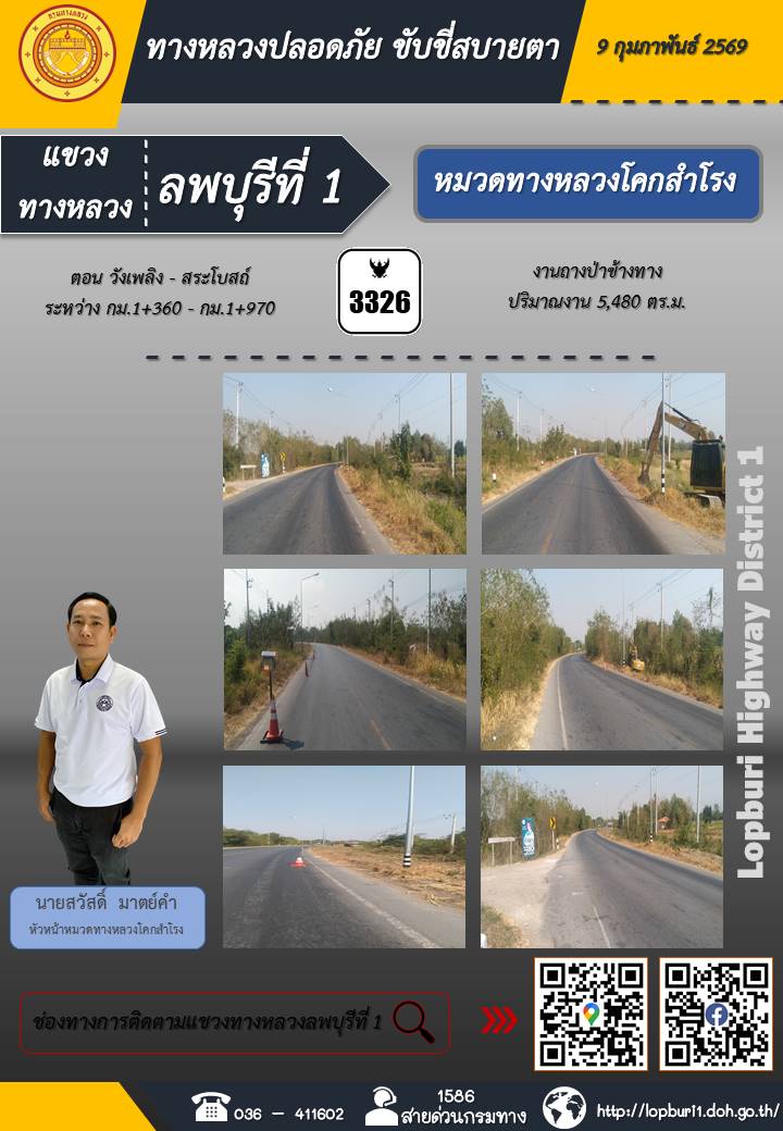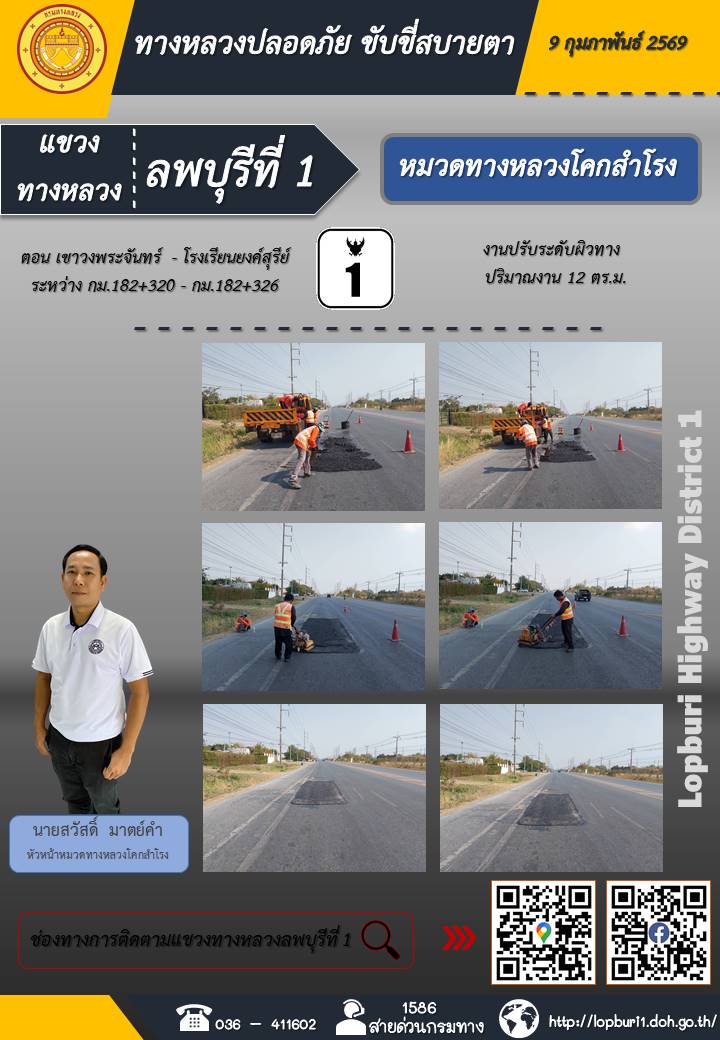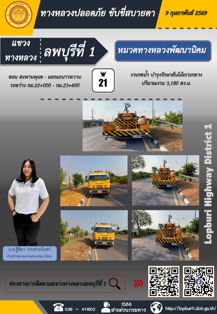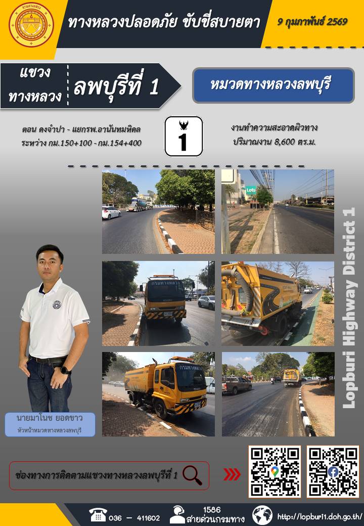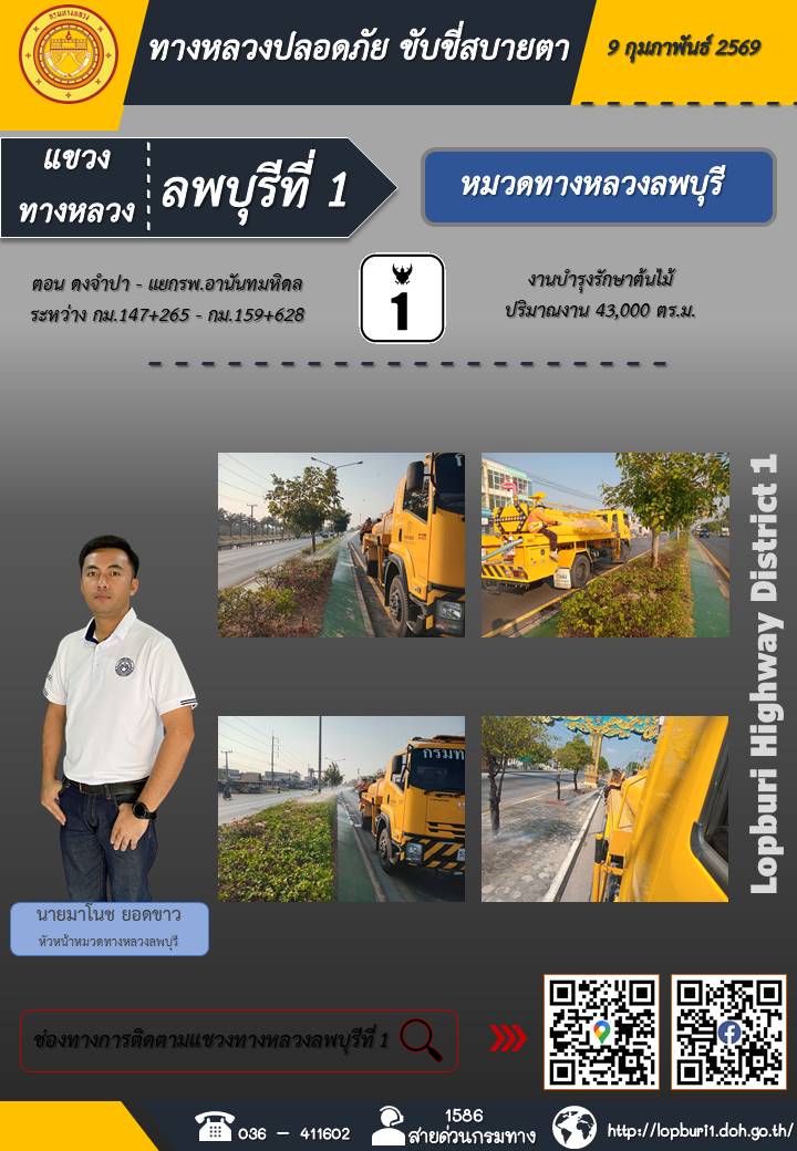 ทางหลวงปลอดภัยขับขี่สบายตา แขวงทางหลวงลพบุรีที่ 1 ประจำวันที่ 9 กุมภาพันธ์ 2569