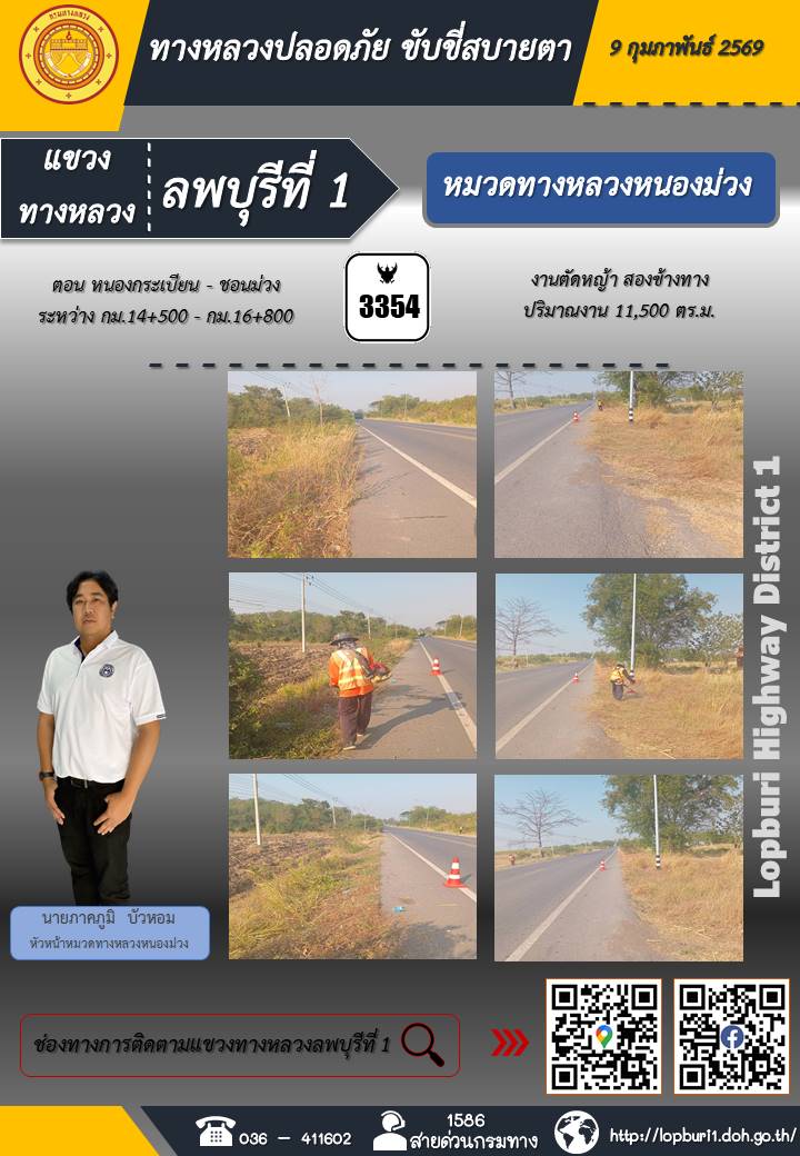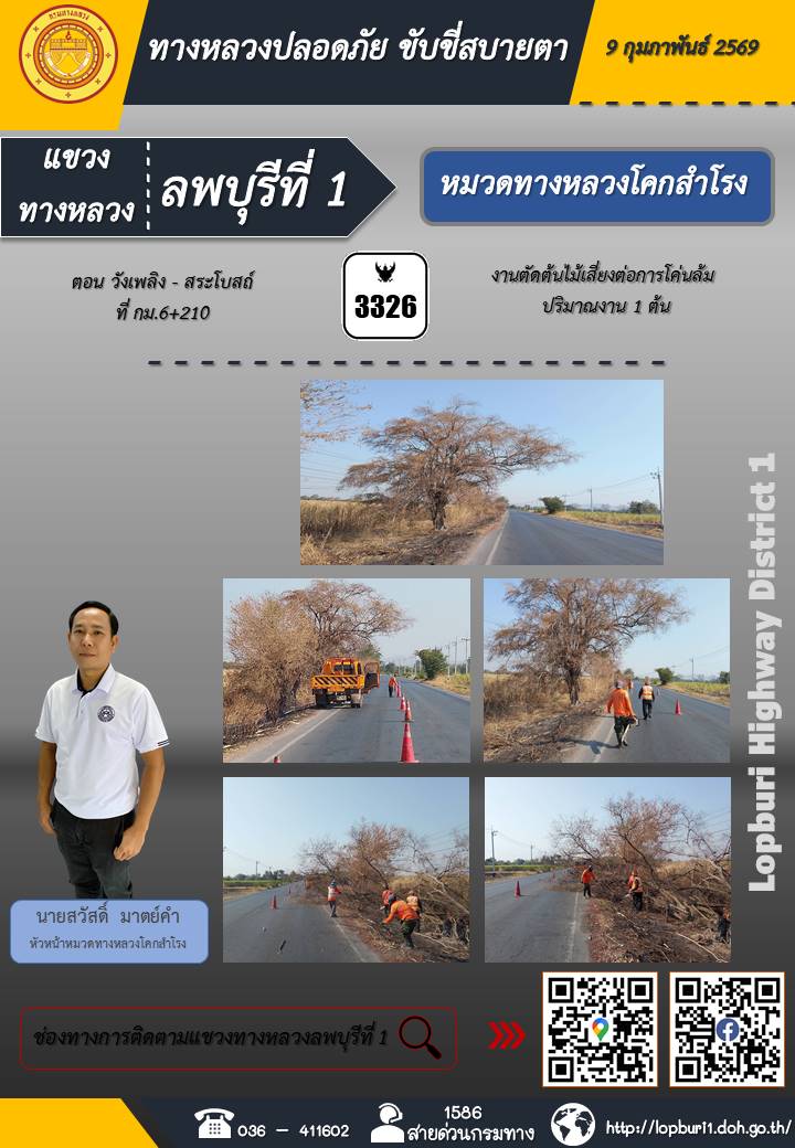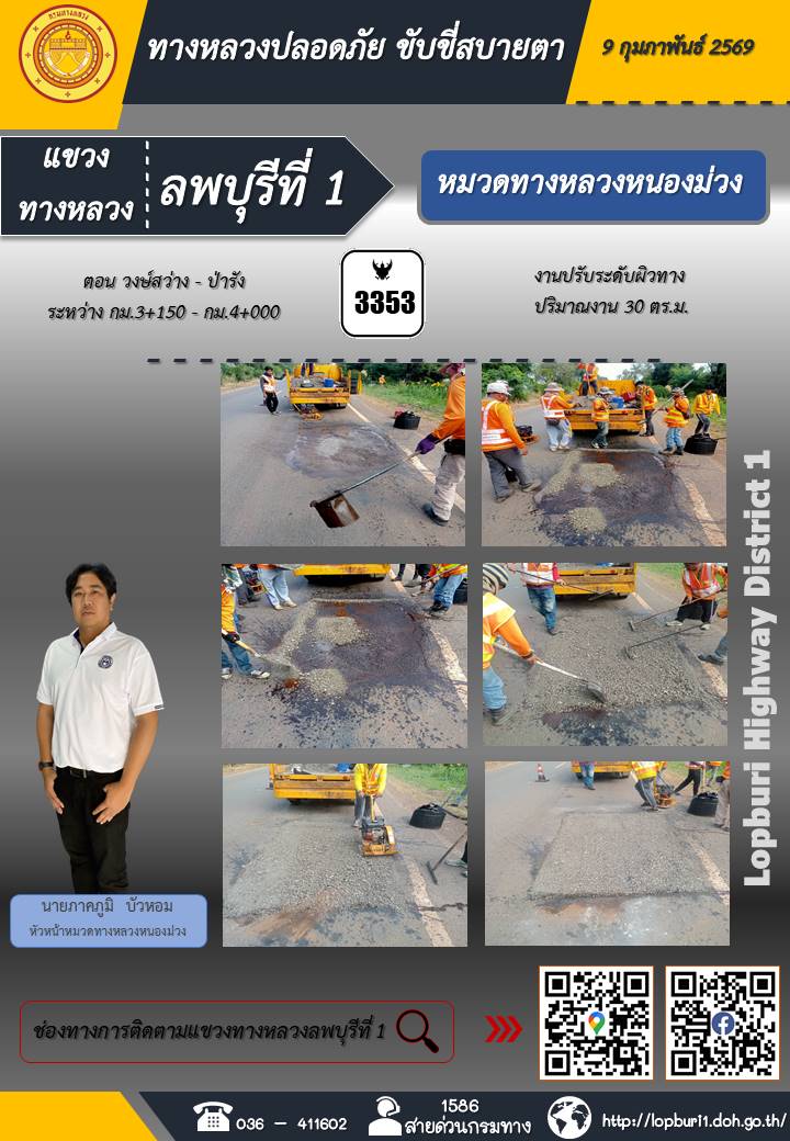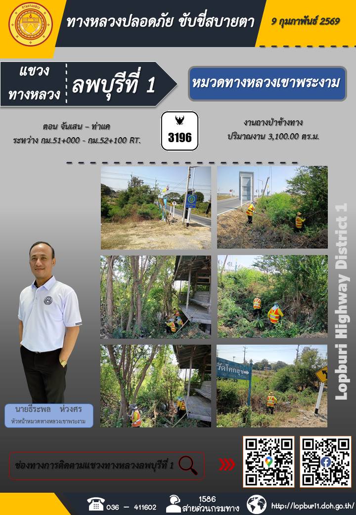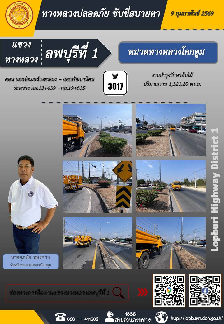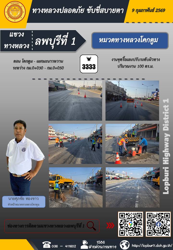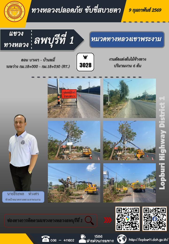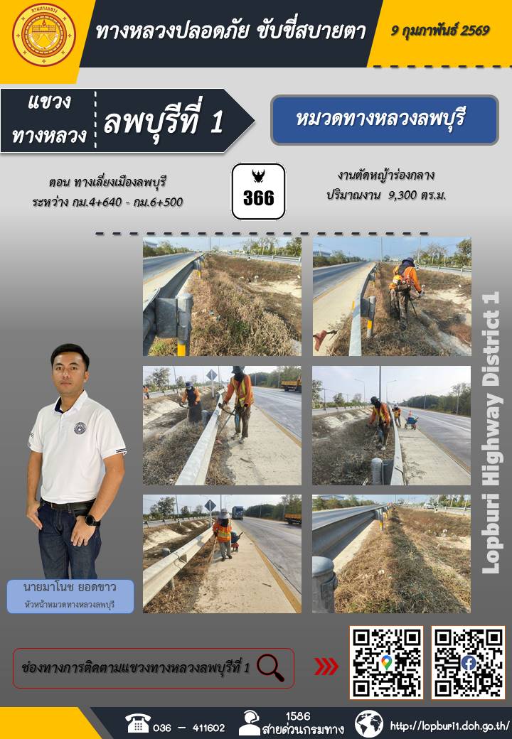 ทางหลวงปลอดภัยขับขี่สบายตา แขวงทางหลวงลพบุรีที่ 1 ประจำวันที่ 9 กุมภาพันธ์ 2569