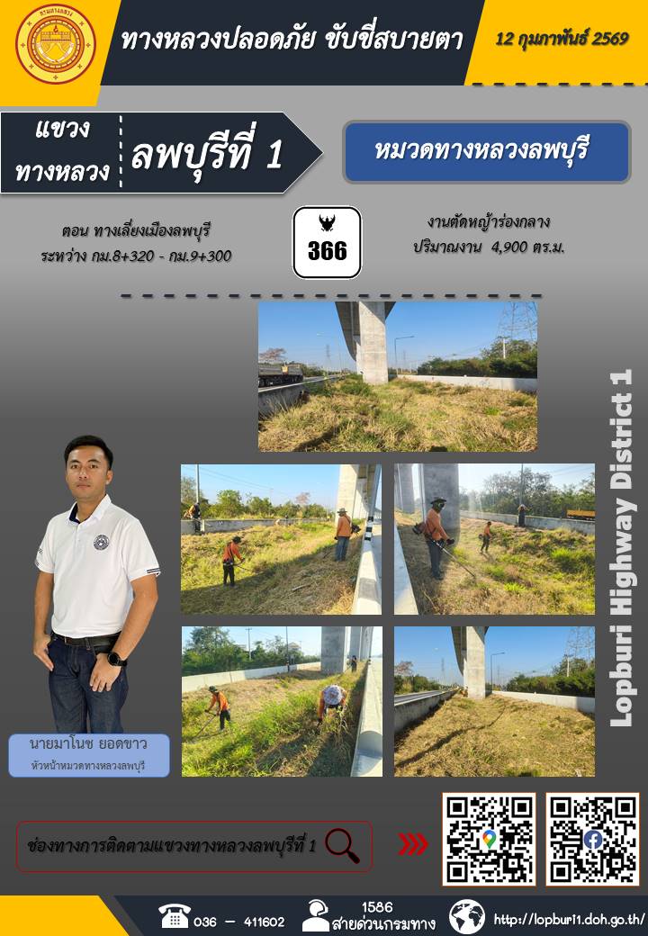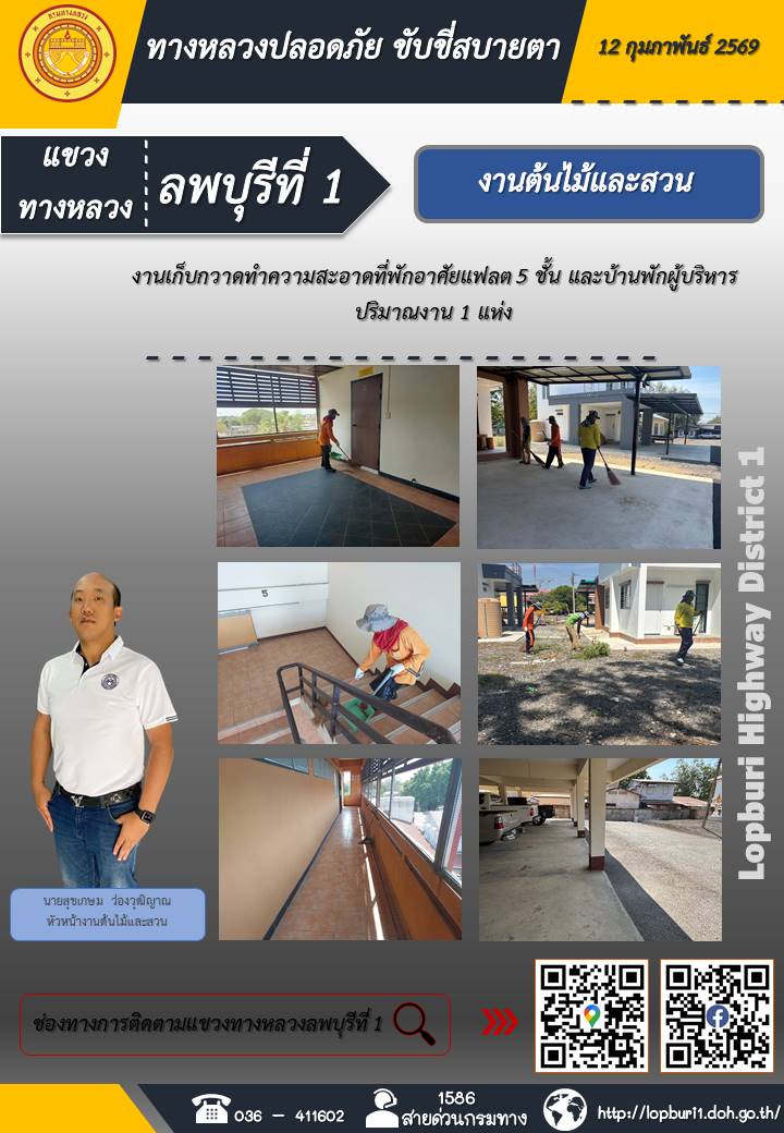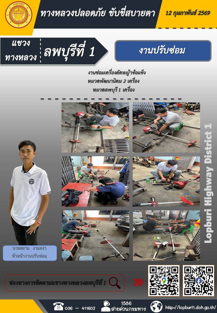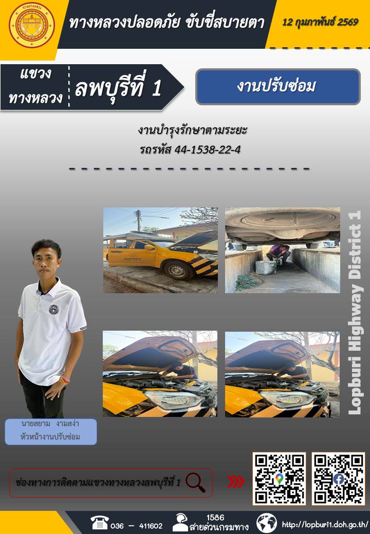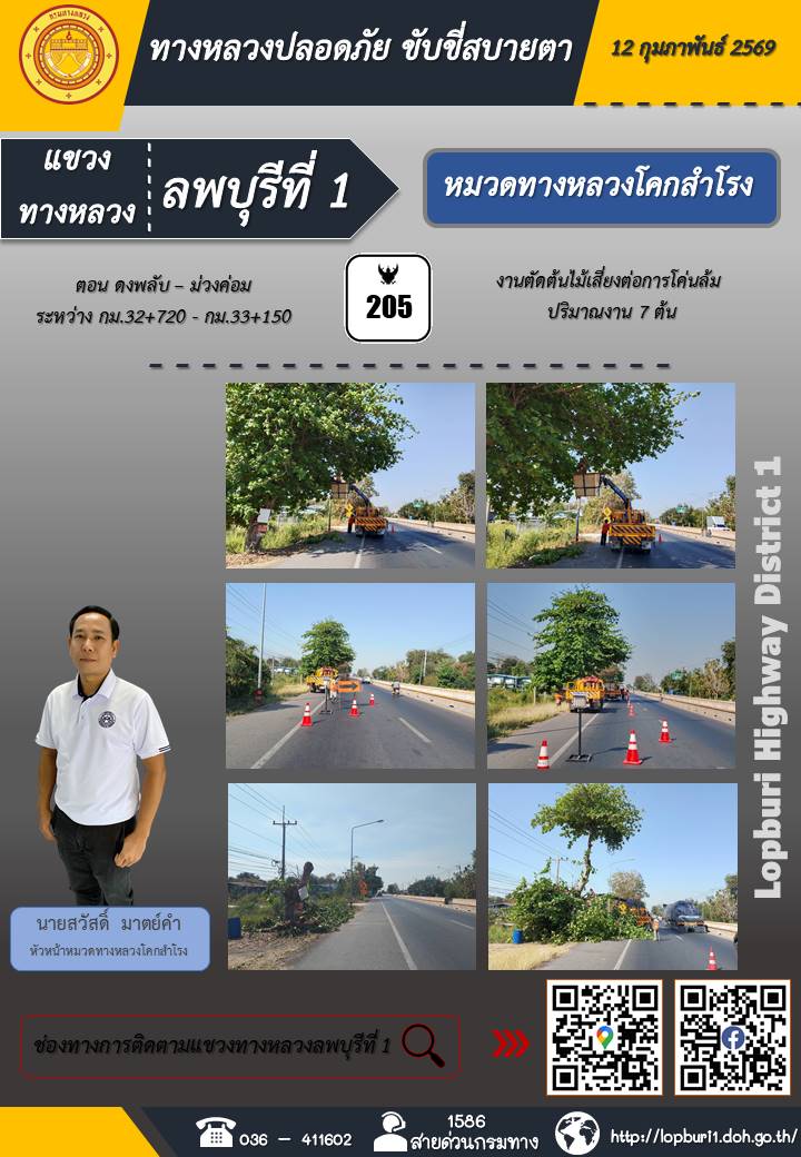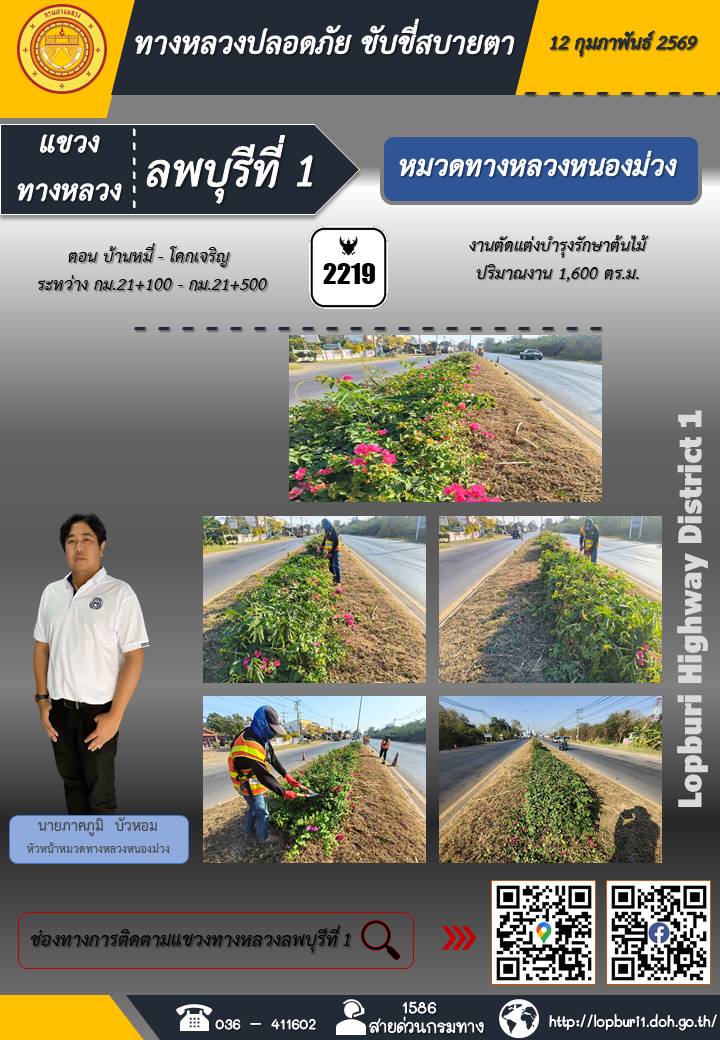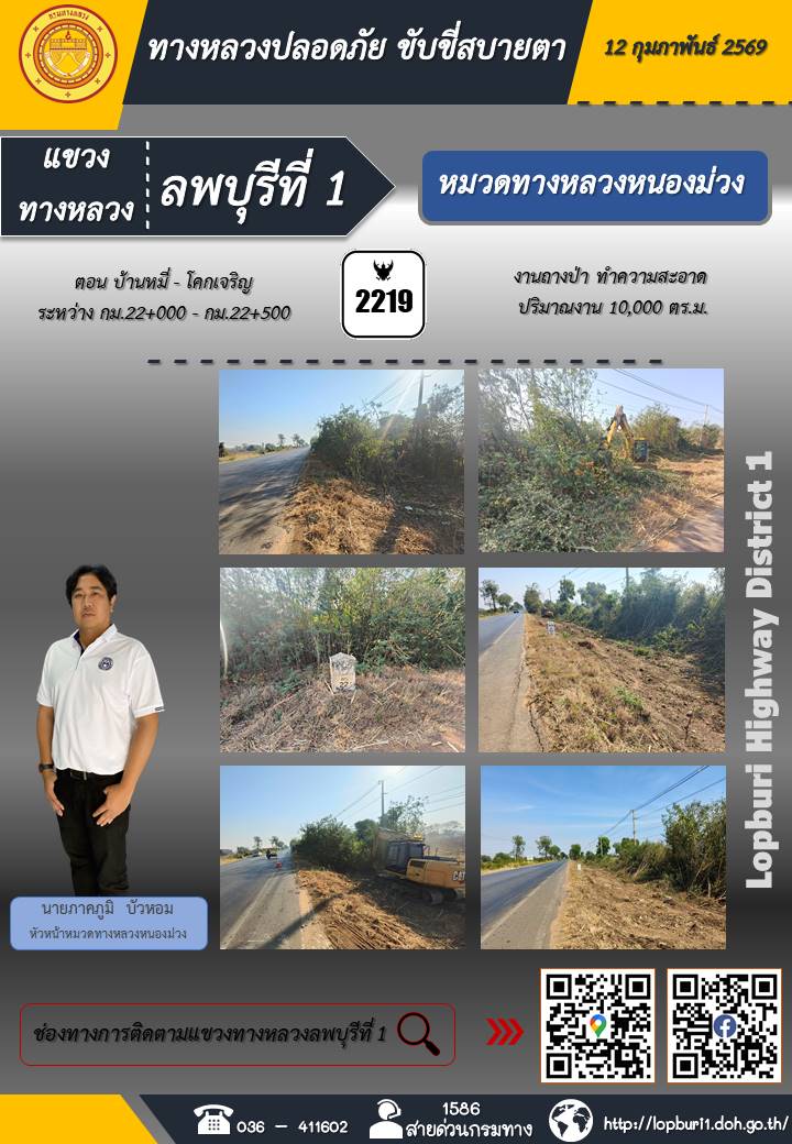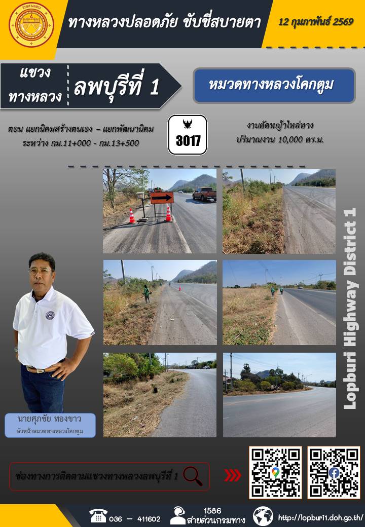 ทางหลวงปลอดภัยขับขี่สบายตา แขวงทางหลวงลพบุรีที่ 1 ประจำวันที่ 12 กุมภาพันธ์ 2569