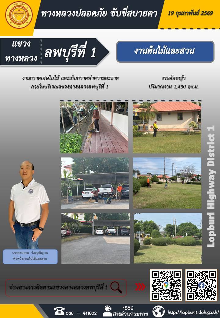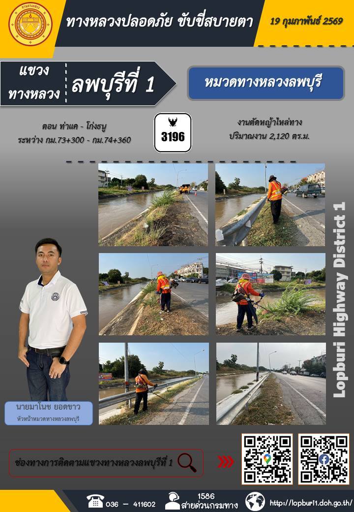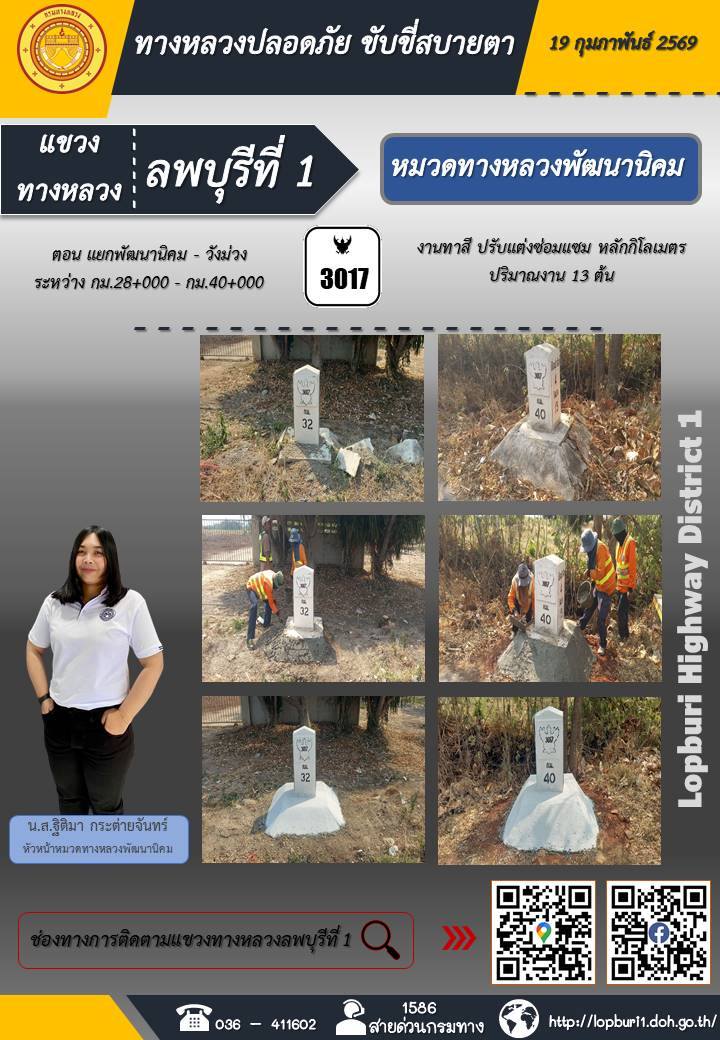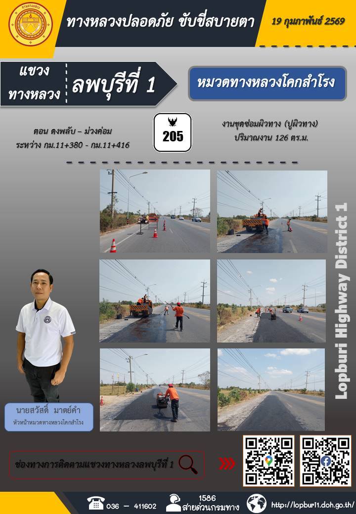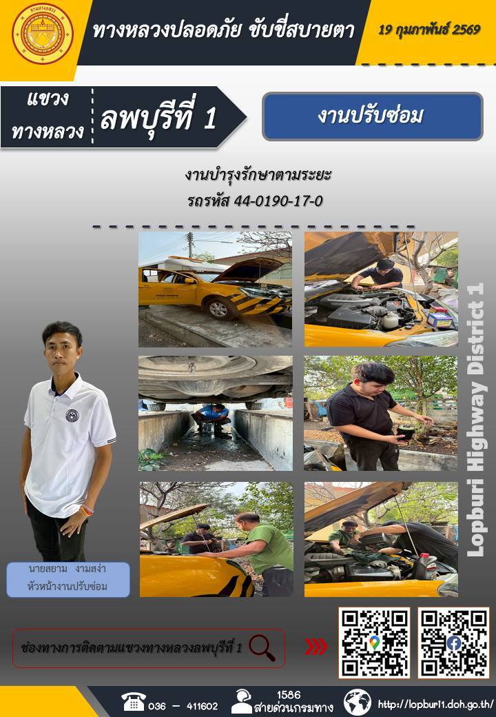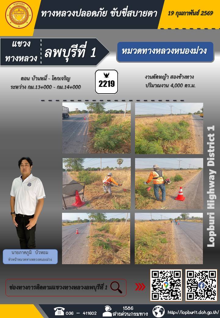 ทางหลวงปลอดภัยขับขี่สบายตา แขวงทางหลวงลพบุรีที่ 1 ประจำวันที่ 19 กุมภาพันธ์ 2569