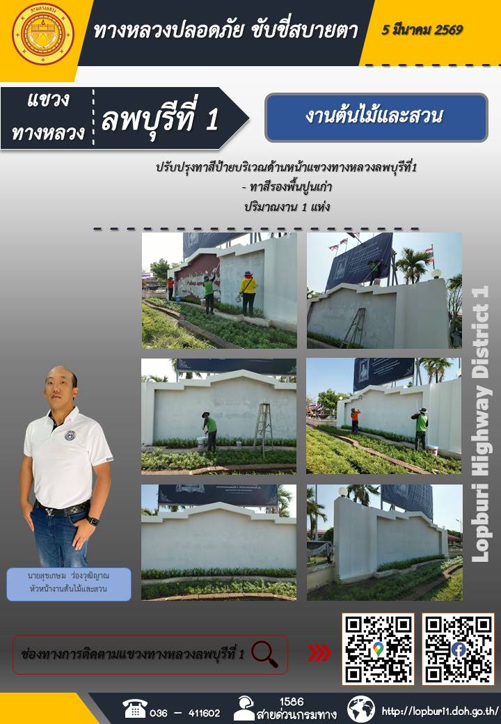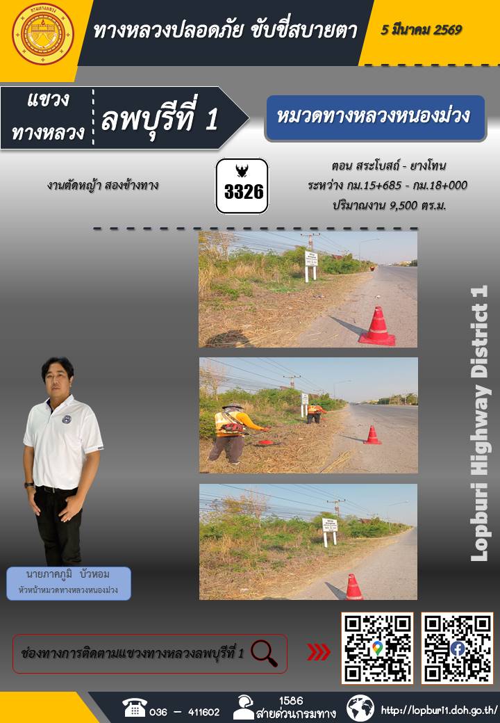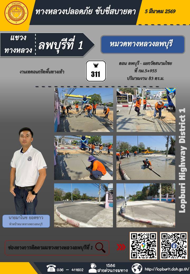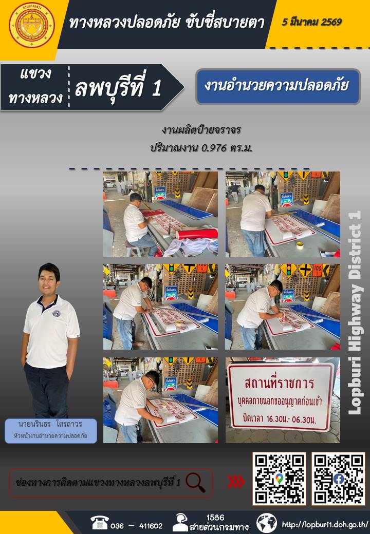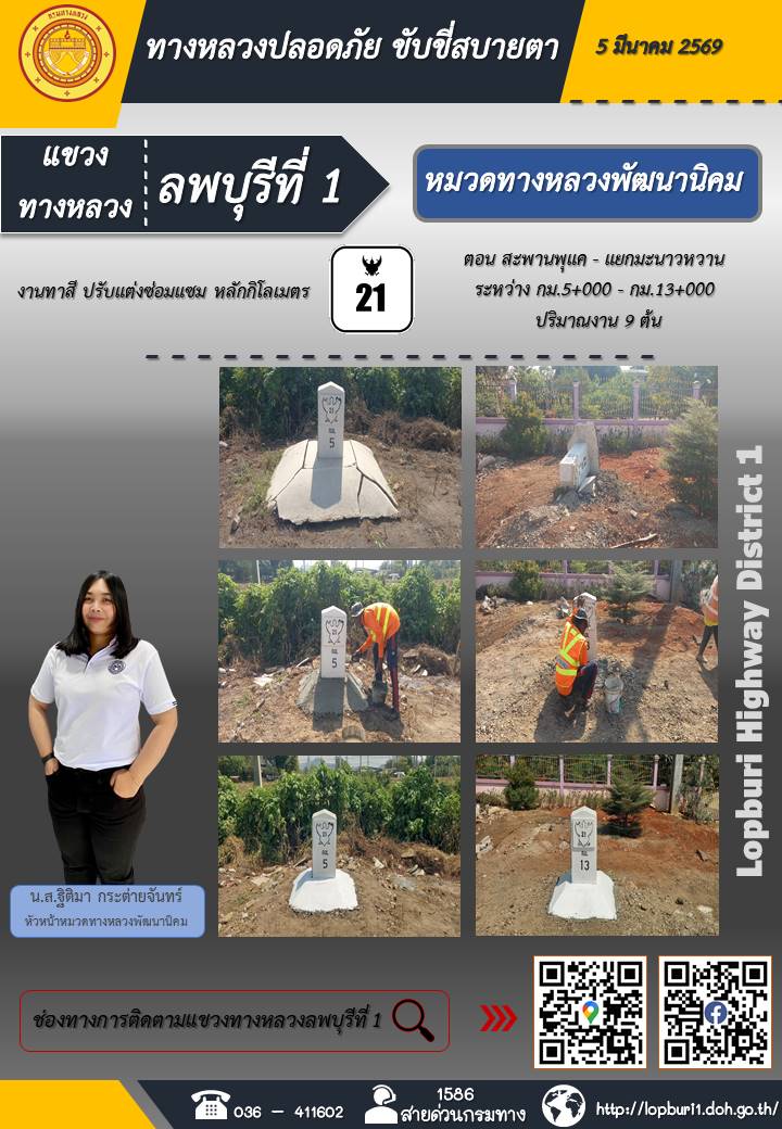 ทางหลวงปลอดภัยขับขี่สบายตา แขวงทางหลวงลพบุรีที่ 1 ประจำวันที่ 5 มีนาคม 2569