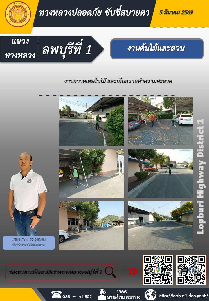 ทางหลวงปลอดภัยขับขี่สบายตา แขวงทางหลวงลพบุรีที่ 1 ประจำวันที่  5 มีนาคม 2569