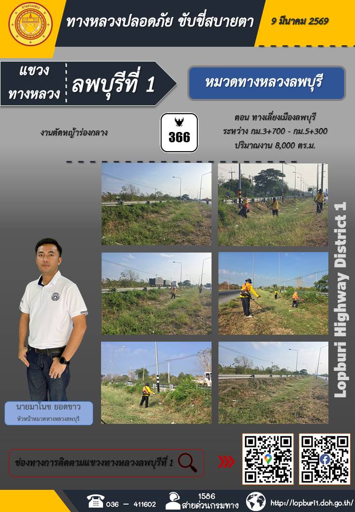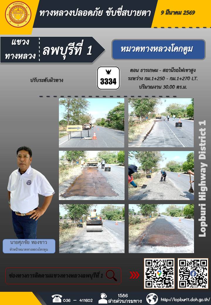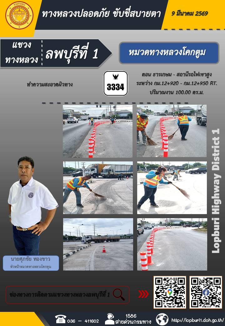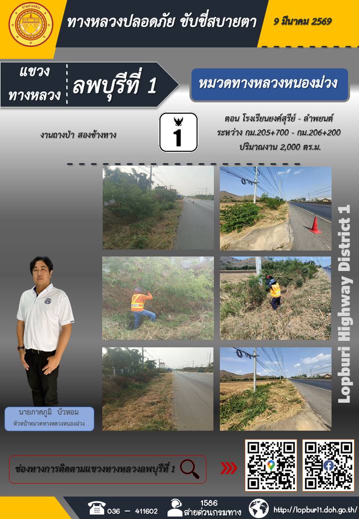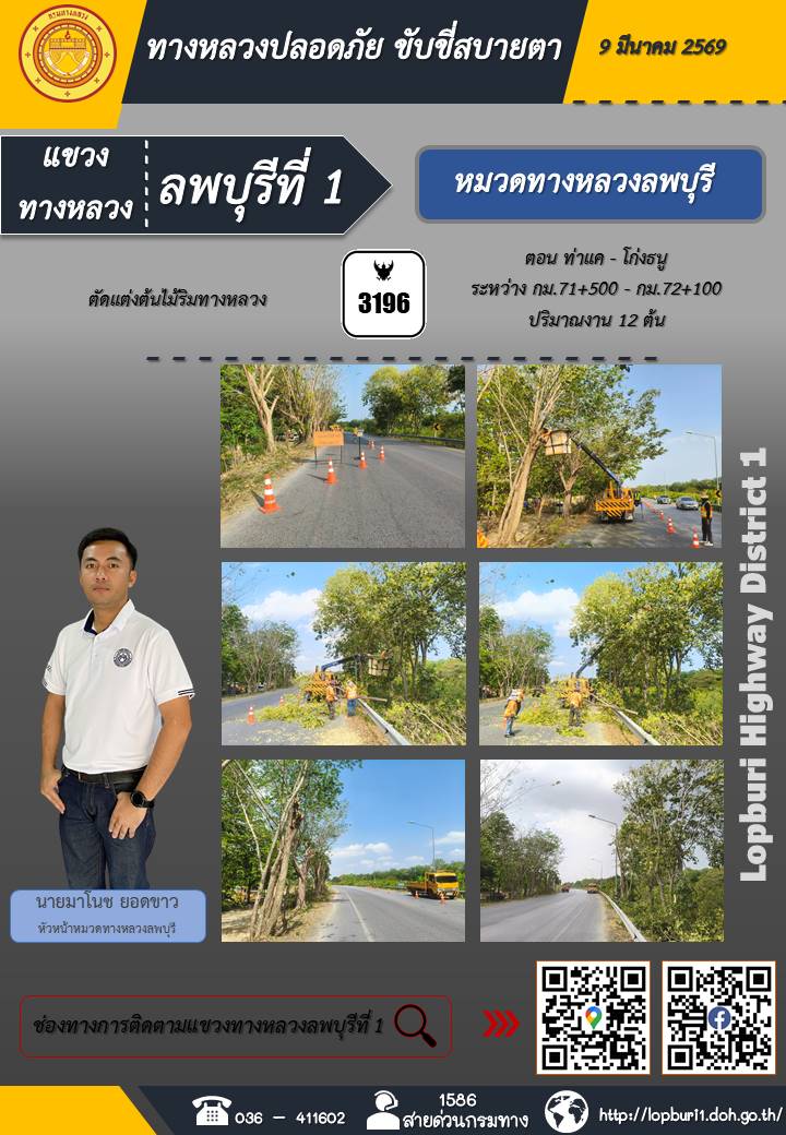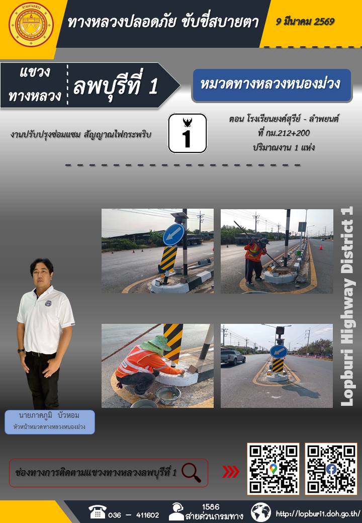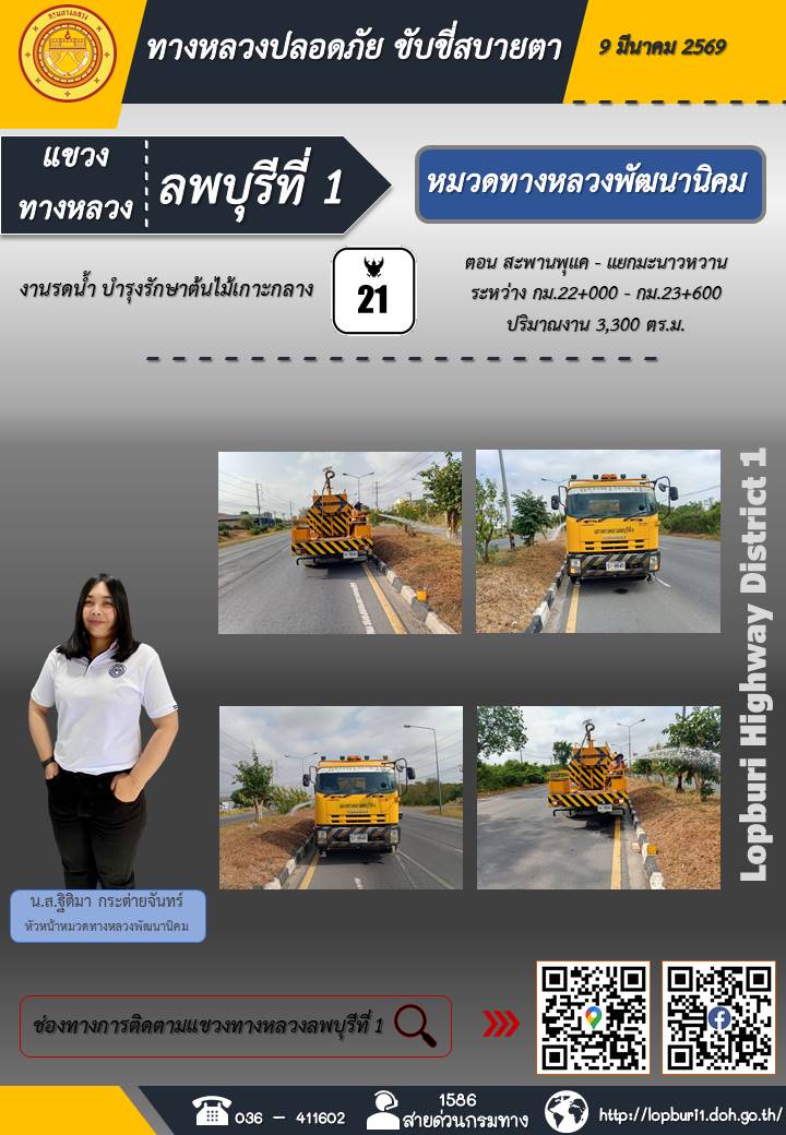 ทางหลวงปลอดภัยขับขี่สบายตา แขวงทางหลวงลพบุรีที่ 1 ประจำวันที่ 9 มีนาคม 2569