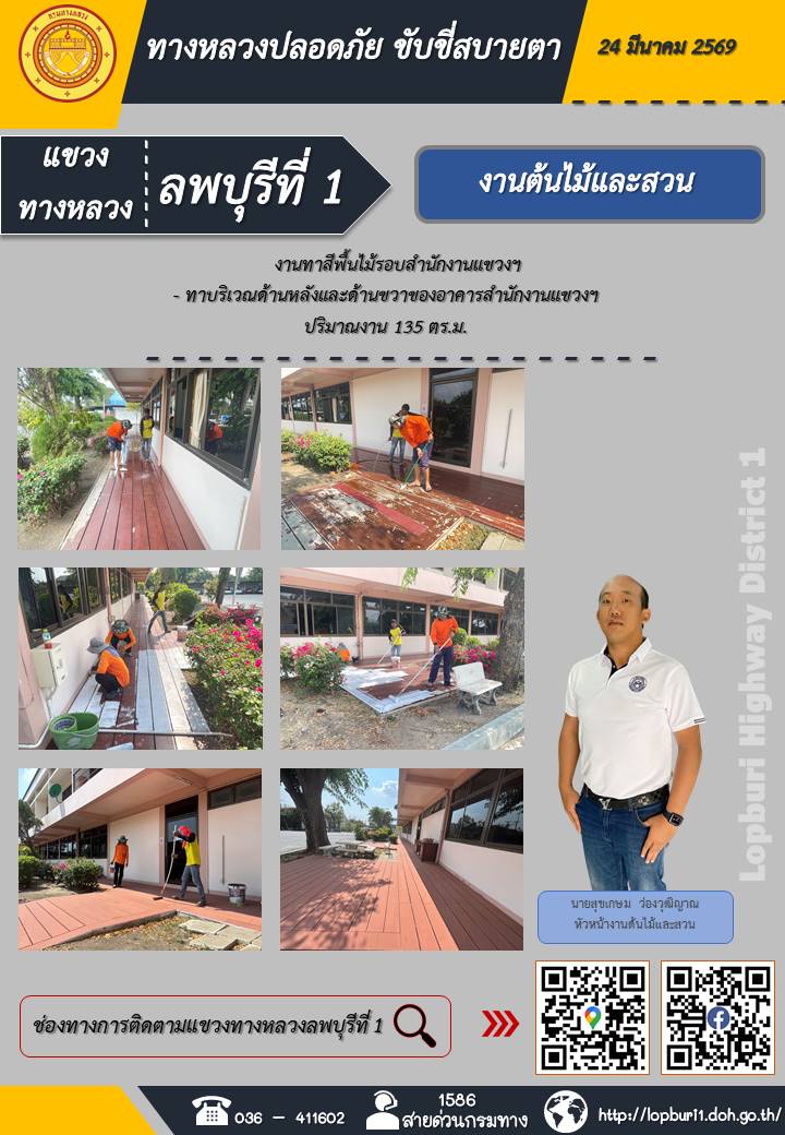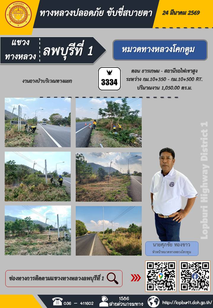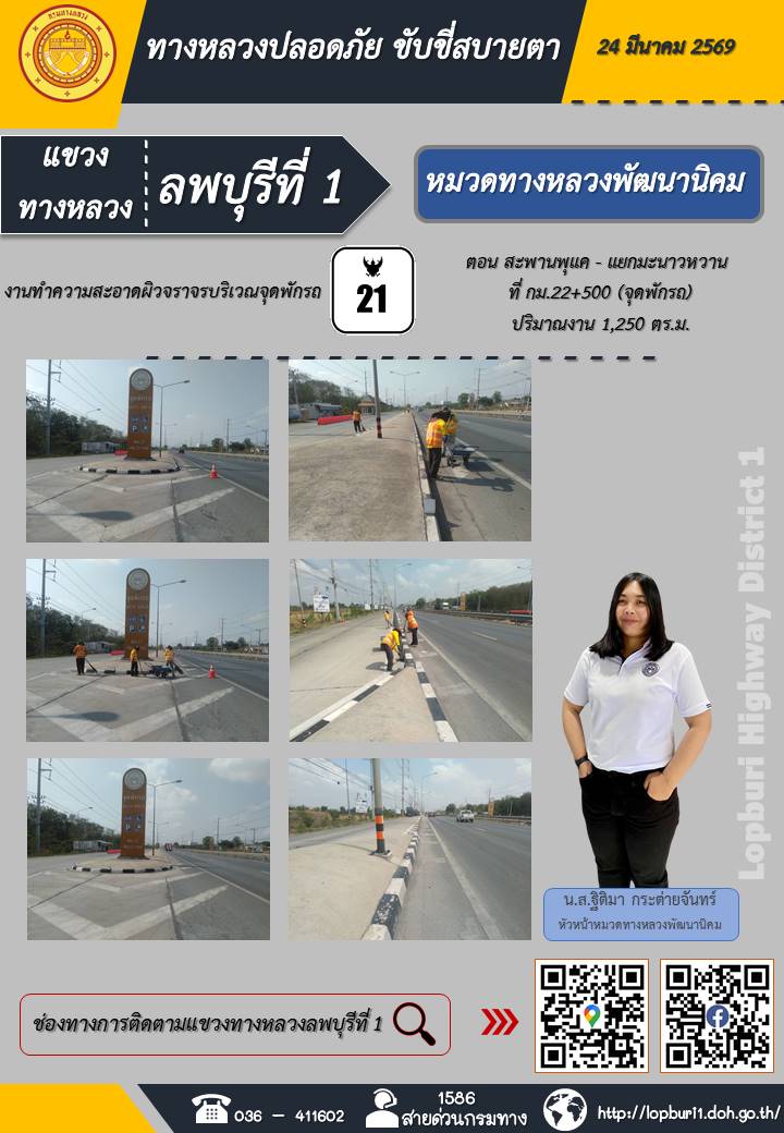 ทางหลวงปลอดภัยขับขี่สบายตา แขวงทางหลวงลพบุรีที่ 1 ประจำวันที่ 24 มีนาคม 2569