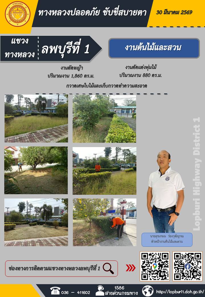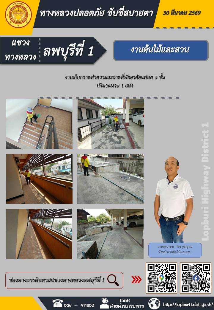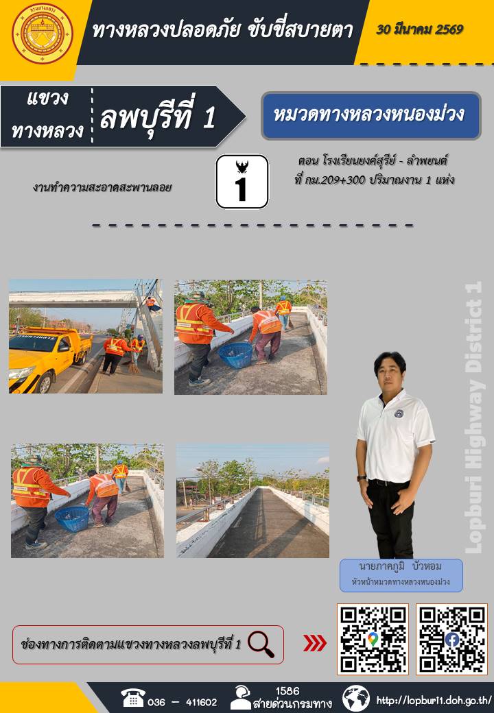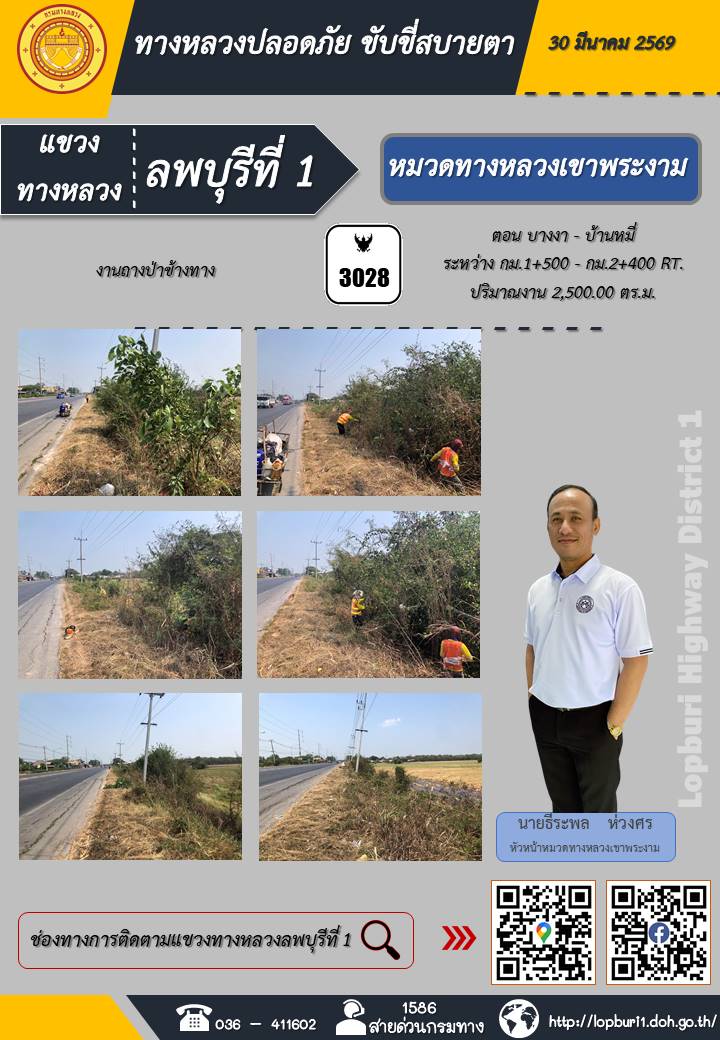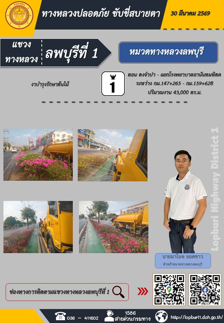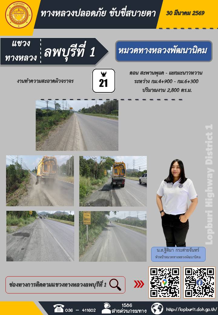 ทางหลวงปลอดภัยขับขี่สบายตา แขวงทางหลวงลพบุรีที่ 1 ประจำวันที่ 30 มีนาคม 2569