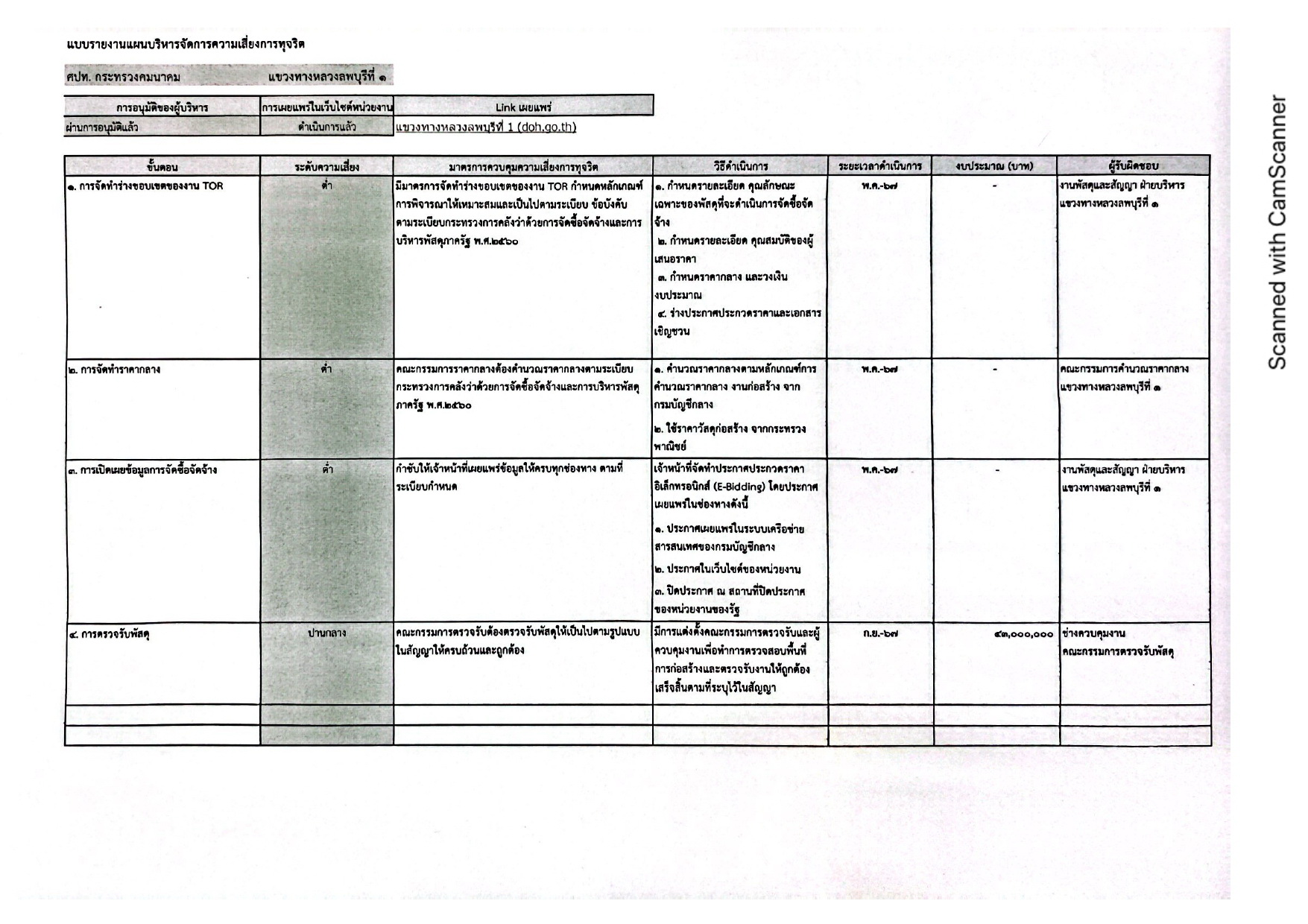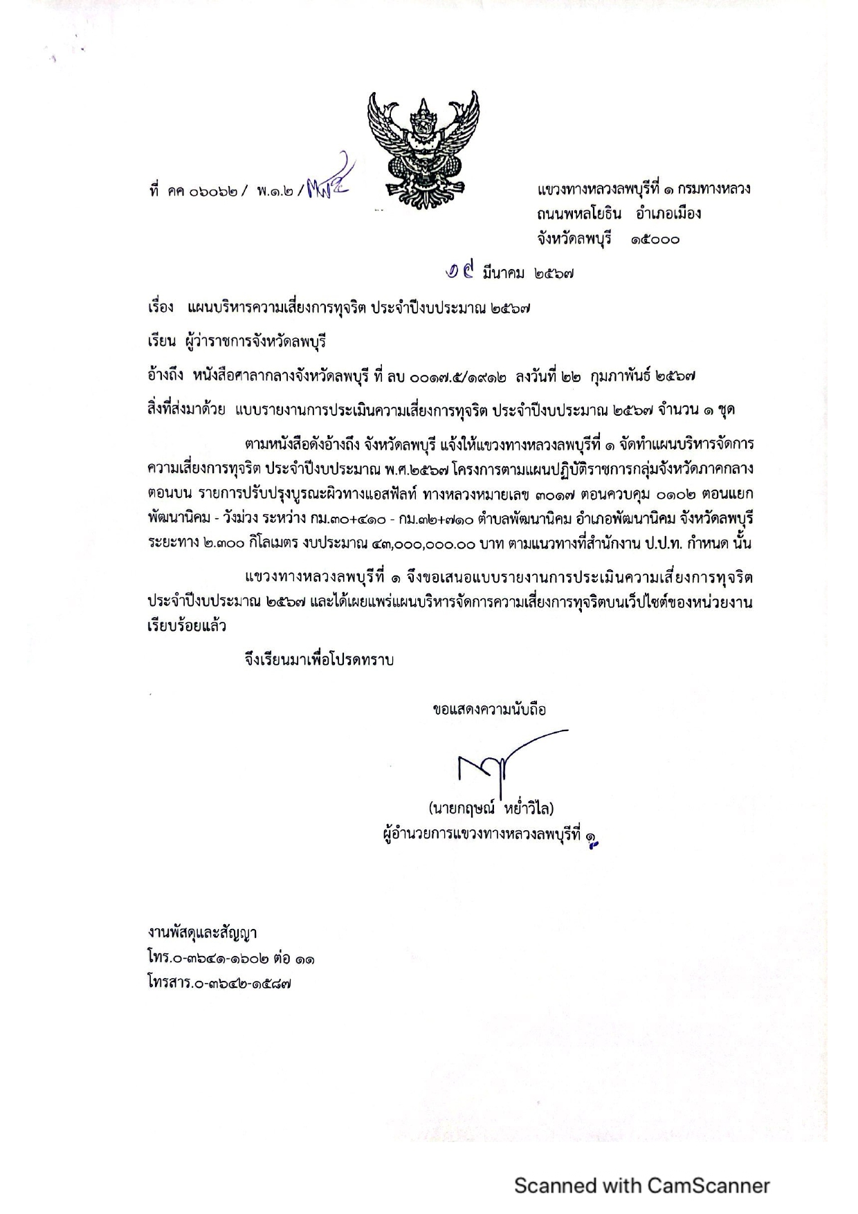 แผนบริหารความเสี่ยงการทุจริต ประจำปีงบประมาณ 2567