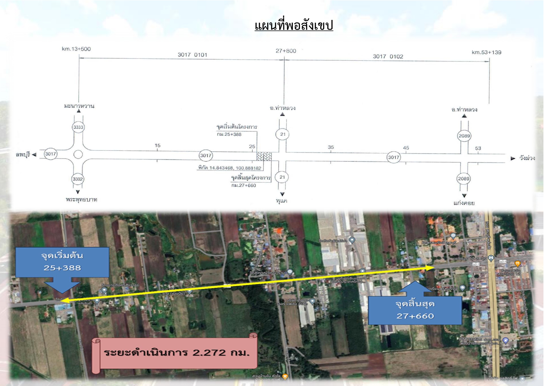 ด้วยแขวงทางหลวงลพบุรีที่ 1 กรมทางหลวง ได้รับจัดสรรงบประมาณปี 2567 โครงการก่อสร้างโครงข่ายทางหลวงแผ่นดินกิจกรรมก่อสร้างทางหลวงพัฒนาพื้นที่ระดับภาค ทางหลวงหมายเลข 2089 ตอน ตอน แสลงพัน – คลองท่าข้าม ระหว่าง กม.16+176 – กม.19+836