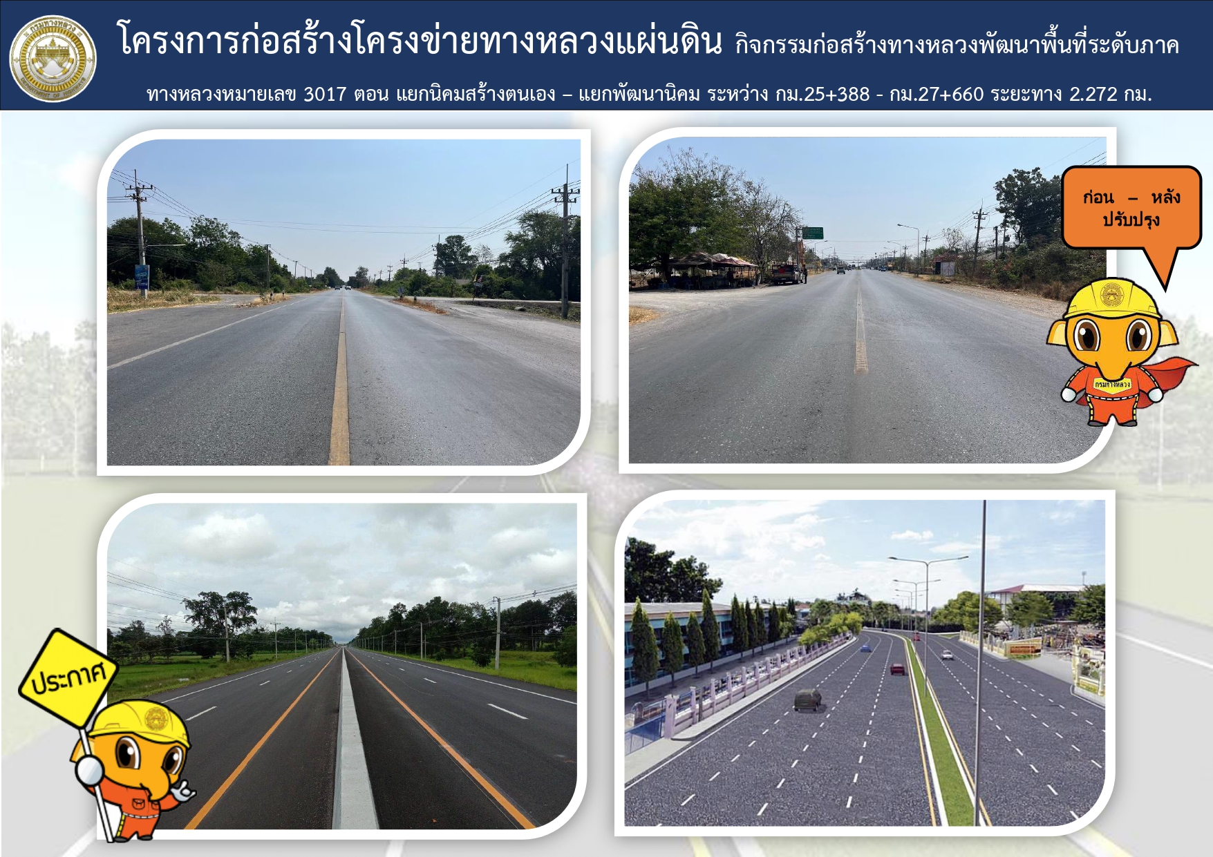 ด้วยแขวงทางหลวงลพบุรีที่ 1 กรมทางหลวง ได้รับจัดสรรงบประมาณปี 2567 โครงการก่อสร้างโครงข่ายทางหลวงแผ่นดิน กิจกรรมก่อสร้างทางหลวงพัฒนาพื้นที่ระดับภาค ทางหลวงหมายเลข 3017 ตอน ตอน แยกนิคมสร้างตนเอง - แยกพัฒนานิคมระหว่าง กม.25+388 - กม.27+660