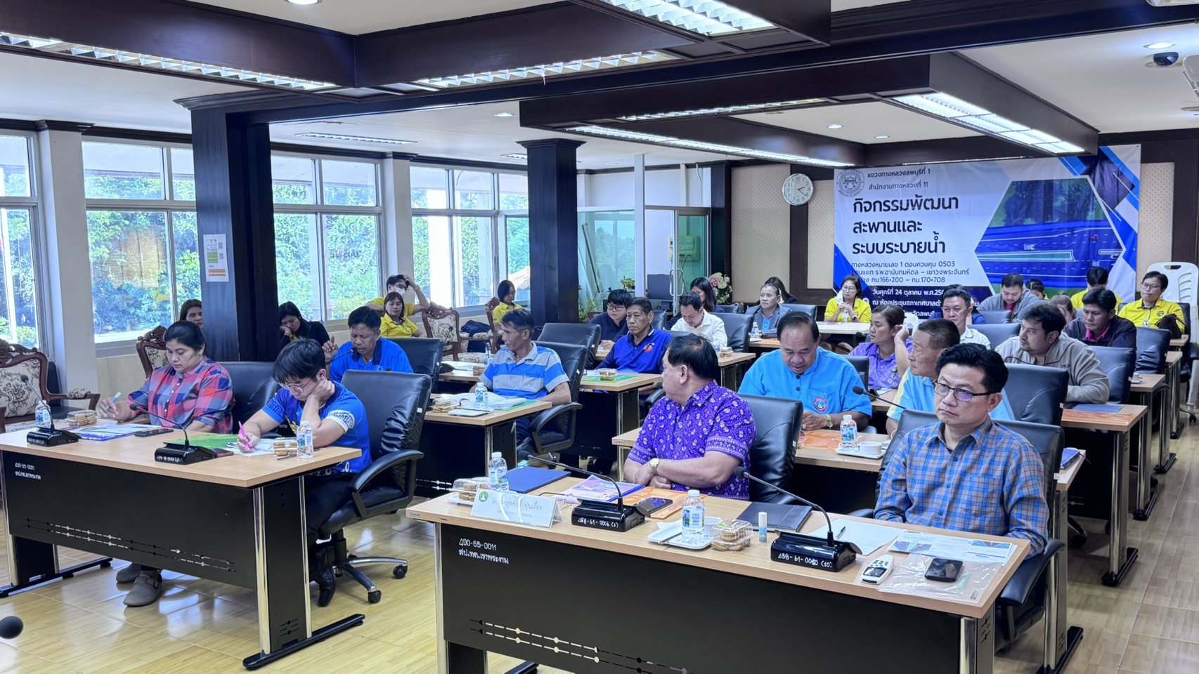 รองผู้อำนวยการแขวงทางหลวงลพบุรีที่ 1 ฝ่ายบริหาร ฝ่ายปฏิบัติการ และ ฝ่ายวิศวกรรม พร้อมด้วยเจ้าหน้าที่แขวงทางหลวงลพบุรีที่ 1 จัดการประชุมรับฟังการบรรยายพร้อมแสดงความคิดเห็น และร่วมแลกเปลี่ยนข้อมูลกิจกรรมพัฒนาสะพานและระบบระบายน้ำ งานพัฒนาสะพานและระบบระบายน้ำ ในทางหลวงหมายเลข 1 ตอนแยก รพ.อานันทมหิดล – เขาวงพระจันทร์ ระหว่าง กม.166+200 – กม.170+708 โดยมี นายธีระพล ห่วงศร นายช่างโยธาชำนาญงาน แขวงทางหลวงลพบุรีที่ 1 และนายปรัชญานนท์ ปิ่นเพ็ชร์ นายช่างโยธาชำนาญงาน สำนักงานทางหลวงที่ 11 เป็นวิทยากรให้คำแนะนำแก่ตัวแทนหน่วยงานราชการที่เกี่ยวข้อง และประชาชนที่อาศัยอยู่ในบริเวณสองข้างทาง ณ ห้องประชุมสภาเทศบาลตำบลเขาพระงาม อำเภอเมือง จังหวัดลพบุรี