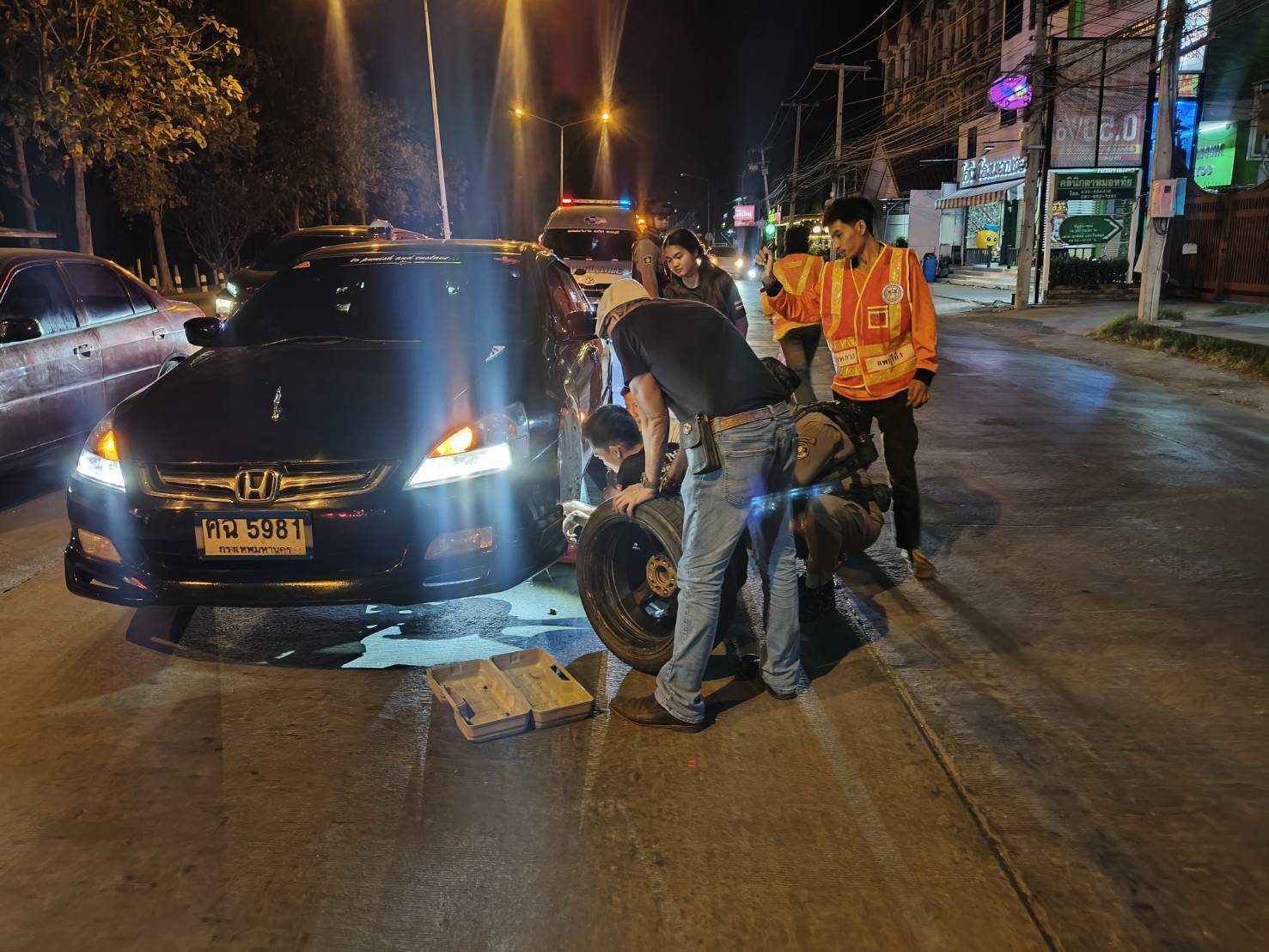 เวลาประมาณ 20.10 น. แขวงทางหลวงลพบุรีที่ 1 โดย ชุดรถบริการฉุกเฉิน (หมวดทางหลวงลพบุรี) ออกปฏิบัติงานให้ความช่วยเหลือ รถยนต์เก๋ง Honda สีดำ หมายเลขทะเบียน ศฉ 5981 กรุงเทพมหานคร ล้อหน้าด้านซ้ายหลุดจอดขัดข้องกีดขวางช่องทางจราจร ในทางหลวงหมายเลข 3016 ตอน ลพบุรี - ค่ายเอราวัณ ที่ กม.2+000 (ด้านขวาทาง) จึงได้เข้าอำนวยความสะดวกด้านการจราจรเพื่อความปลอดภัยแก่ผู้ใช้เส้นทาง