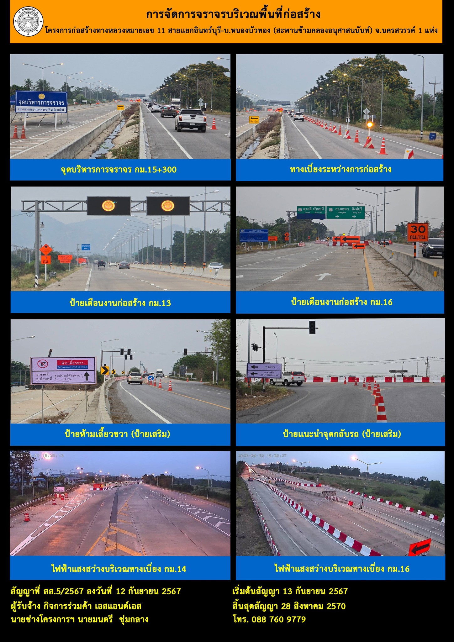 แผนผังทางเบี่ยงการจราจร การก่อสร้างทางหลวงหมายเลข 11 สายแยกอินทร์บุรี - บ.หนองบัวทอง (สะพานข้ามคลองอนุศาสนนันท์) ช่วงเทศกาลสงกรานต์ ระหว่างวันที่ 11 - 17 เมษายน 2568
