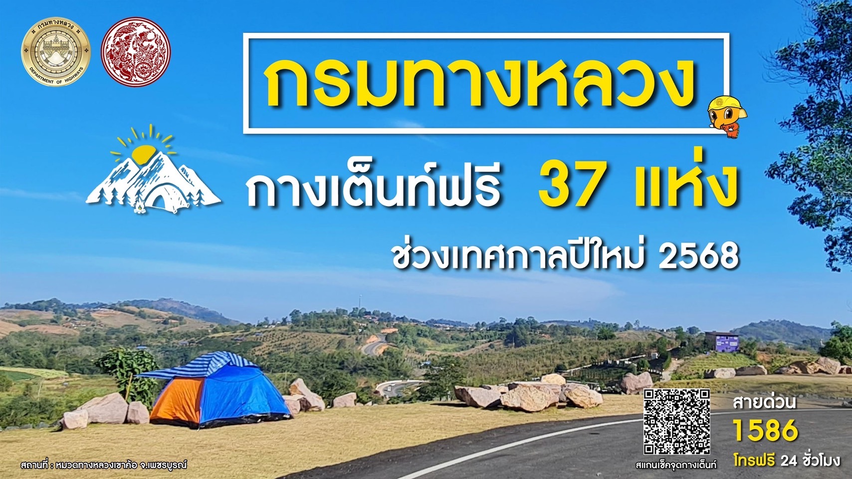 นายอภิรัฐ ไชยวงศ์น้อย อธิบดีกรมทางหลวง เปิดเผยว่า กรมทางหลวง (ทล.) ขานรับนโยบาย “คมนาคมเพื่อโอกาสประเทศไทย” ของ นายสุริยะ จึงรุ่งเรืองกิจ รองนายกรัฐมนตรี และรัฐมนตรีว่าการกระทรวงคมนาคม ที่มุ่งเน้นพัฒนาโครงสร้างพื้นฐานด้านคมนาคมขนส่งให้มีความสะดวก ปลอดภัย พร้อมทั้งสนับสนุนการท่องเที่ยวภายในประเทศ เพื่อเป็นกลไกสำคัญในการขับเคลื่อนระบบเศรษฐกิจและสังคมของประเทศอย่างยั่งยืน โดยกรมทางหลวงได้จัดเตรียมจุดกางเต็นท์ฟรี 37 แห่งทั่วประเทศ เพื่อให้บริการประชาชนในช่วงเทศกาลปีใหม่ 2568 ระหว่างวันที่ 27 ธันวาคม 2567 - วันที่ 2 มกราคม 2568 โดยไม่มีค่าใช้จ่ายใดๆ ทั้งสิ้น