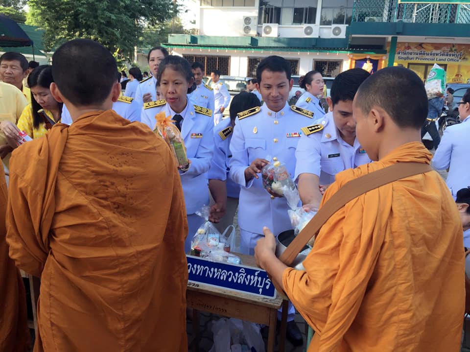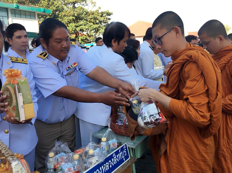 นำข้าราชการและพนักงานราชการในสังกัดแขวงทางหลวงสิงห์บุรี เข้าร่วมพิธีทำบุญตักบาตร