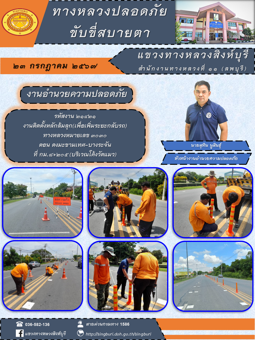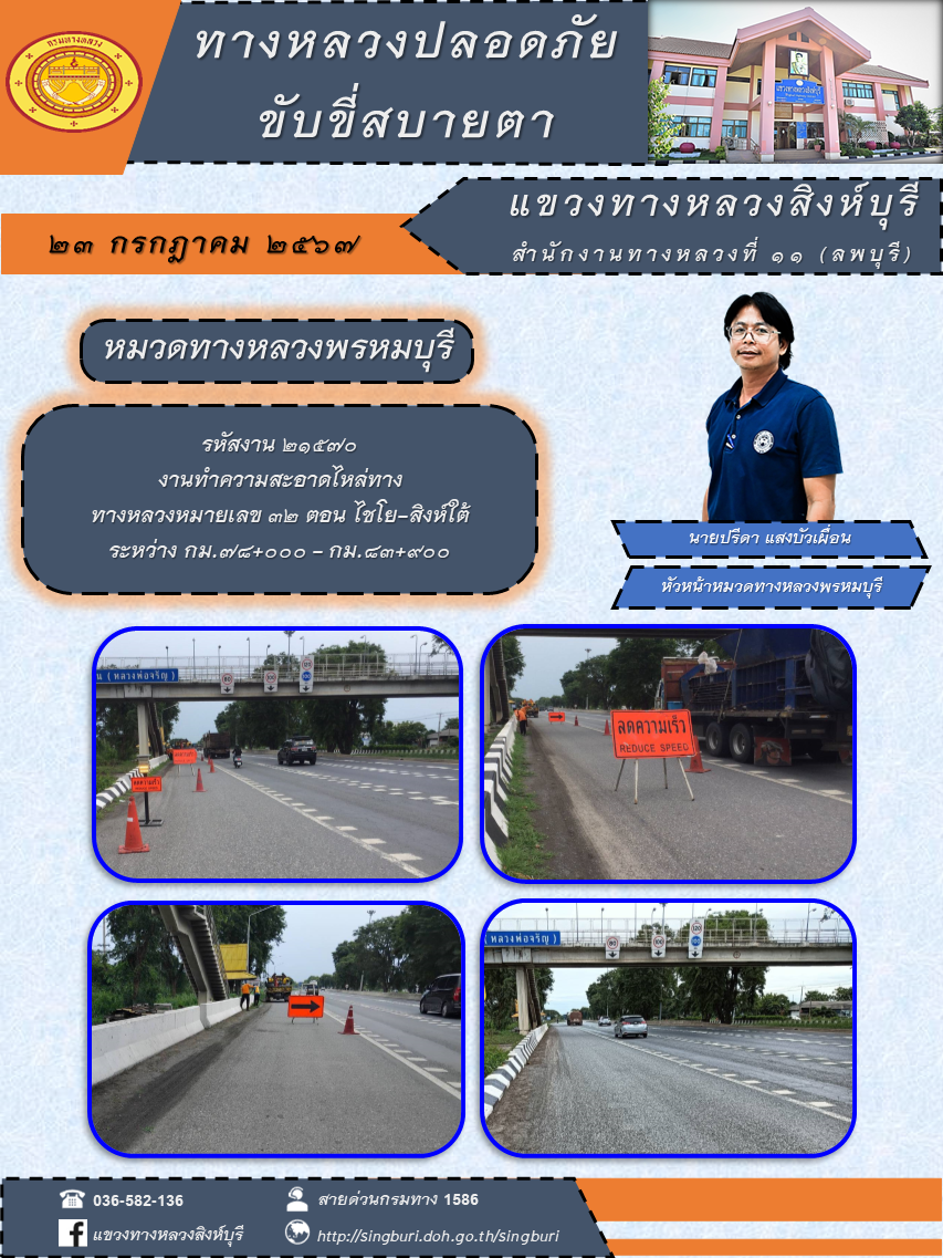 ผลการปฏิบัติงาน ตั้งแต่วันที่ 15 - 19 กรกฎาคม 2567 แขวงทางหลวงสิงห์บุรี