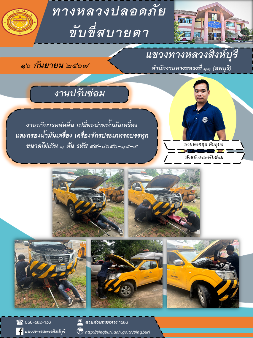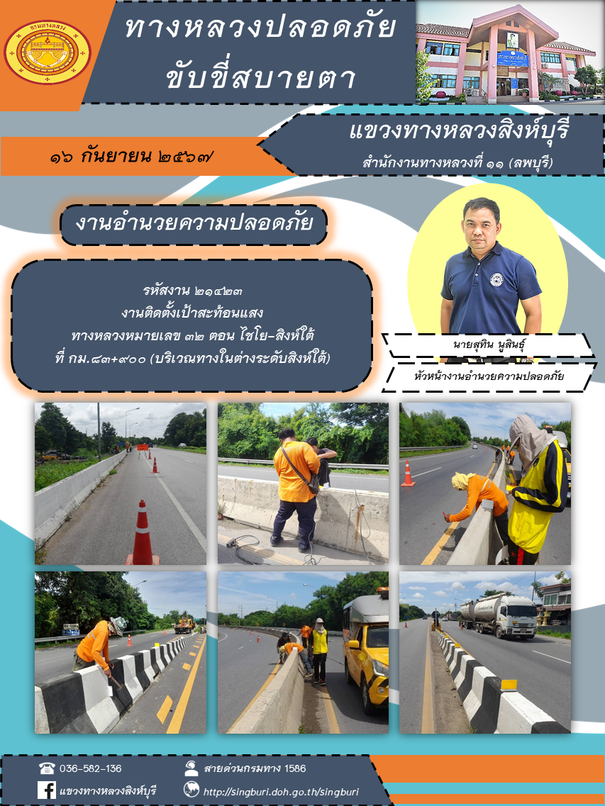 ผลการปฏิบัติงาน ตั้งแต่วันที่ 9-13 กันยายน 2567 แขวงทางหลวงสิงห์บุรี