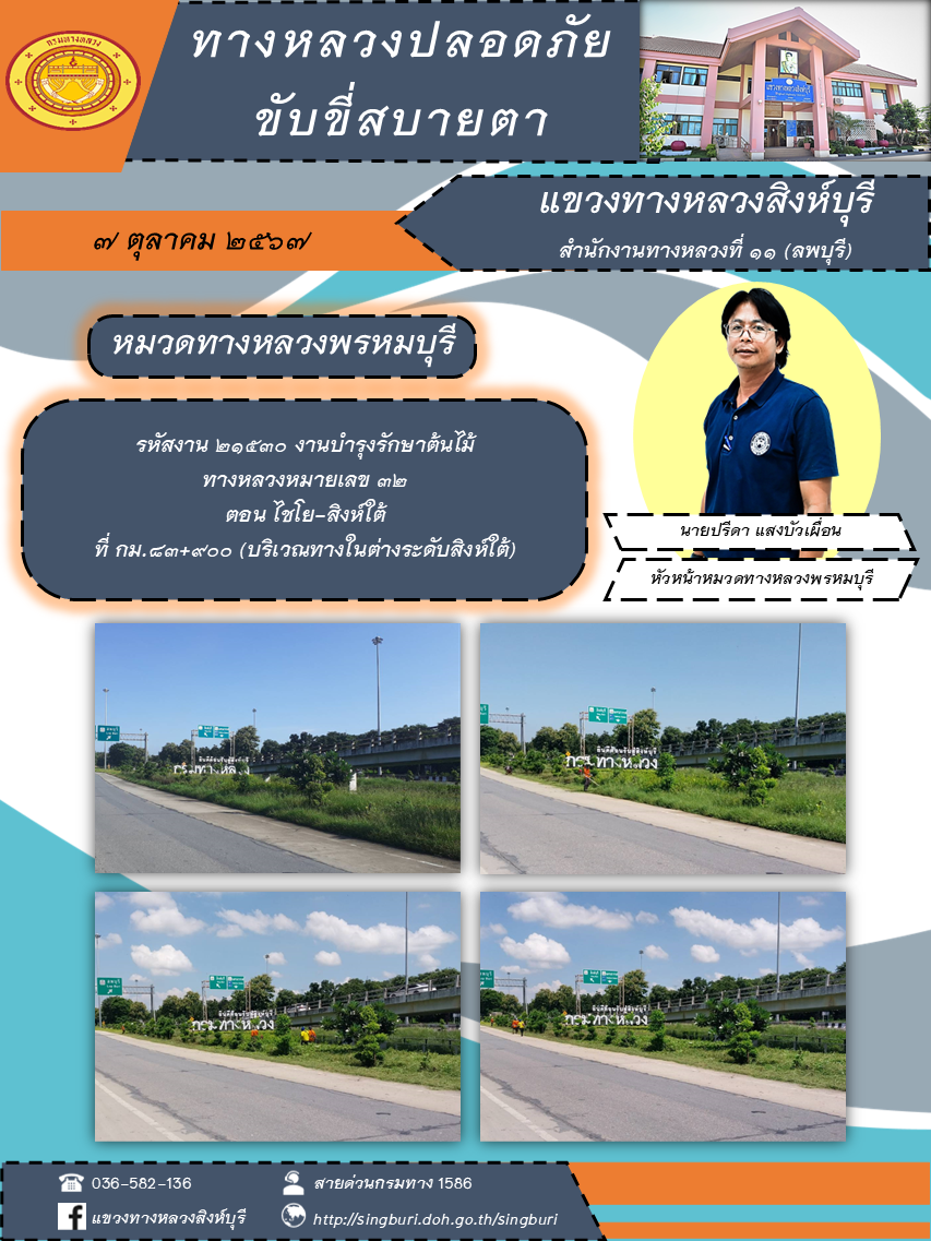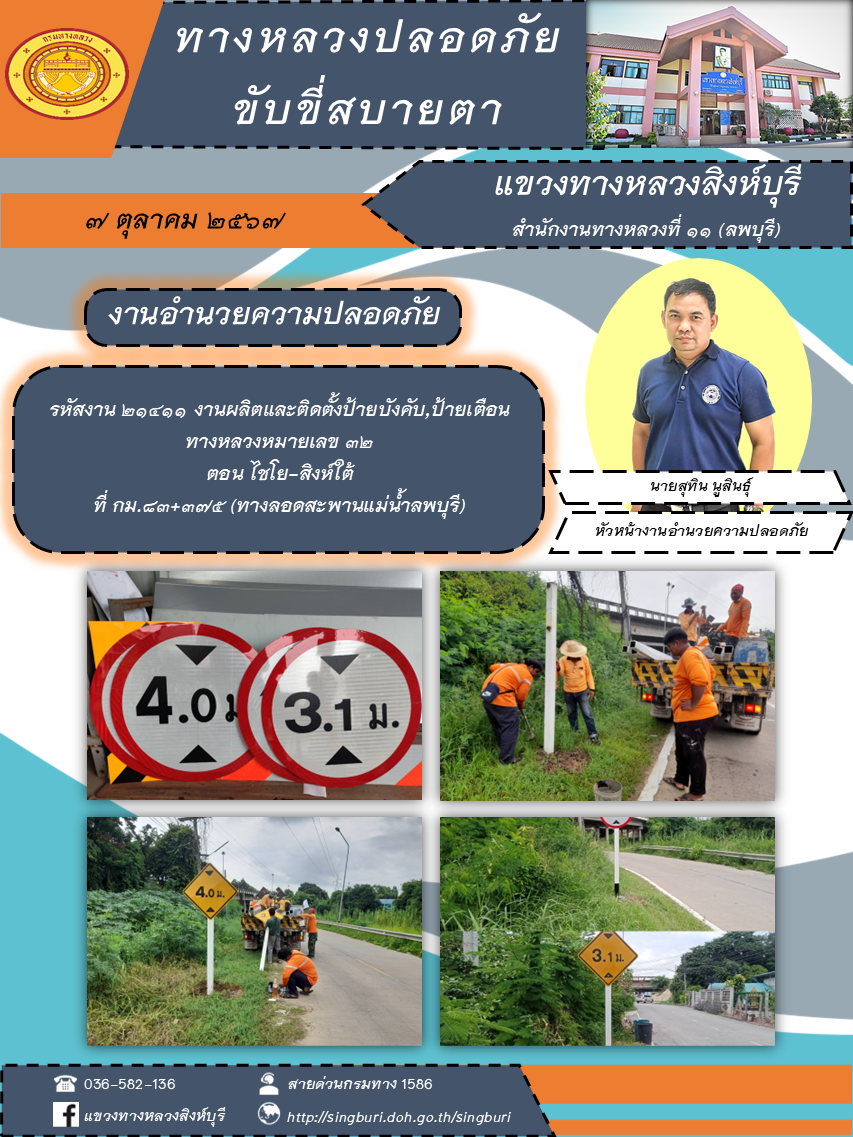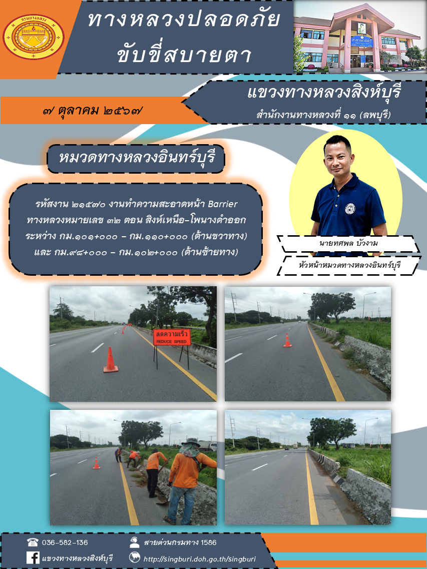 ข้อมูลภาพกิจกรรม : ผลการปฏิบัติงาน ตั้งแต่วันที่ 30 กันยายน ถึง 4 ตุลาคม2567 แขวงทางหลวงสิงห์บุรี