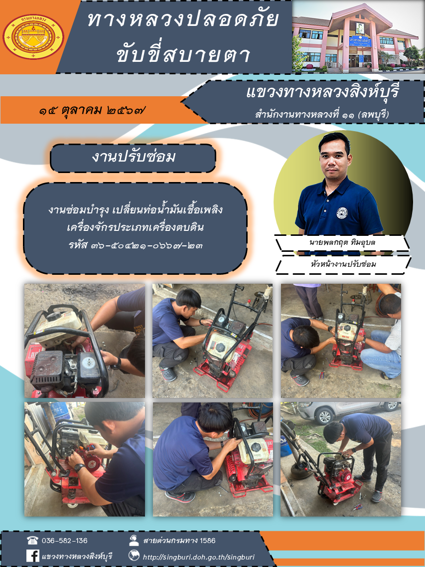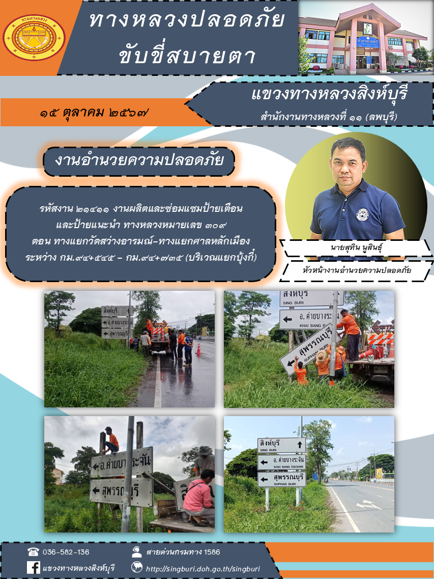 ข้อมูลภาพกิจกรรม : ผลการปฏิบัติงาน ตั้งแต่วันที่ 7 - 11 ตุลาคม 2567 แขวงทางหลวงสิงห์บุรี