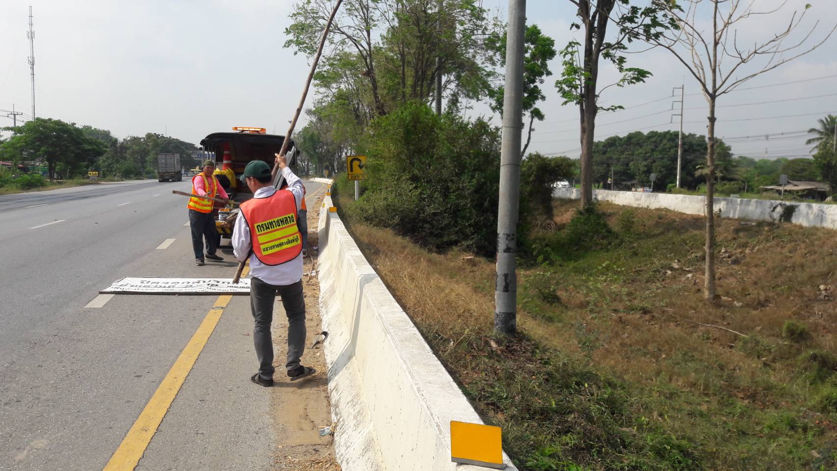 ติดตั้งป้ายประชาสัมพันธ์ ปิดจุดกลับรถชั่วคราว บนทางหลวงหมายเลข 32